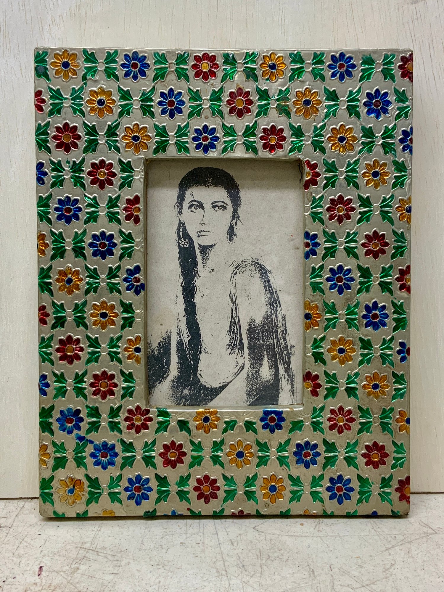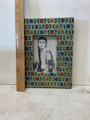 Punched metal painted picture frame, frame itself measures 10.5” x 8.”