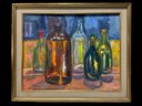 Unsigned Midcentury Colorful Bar Still Life, measures 16” x 20.” Oil on canvas board.
