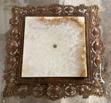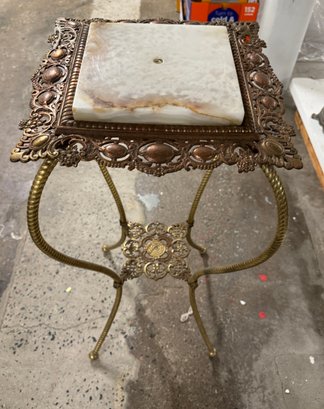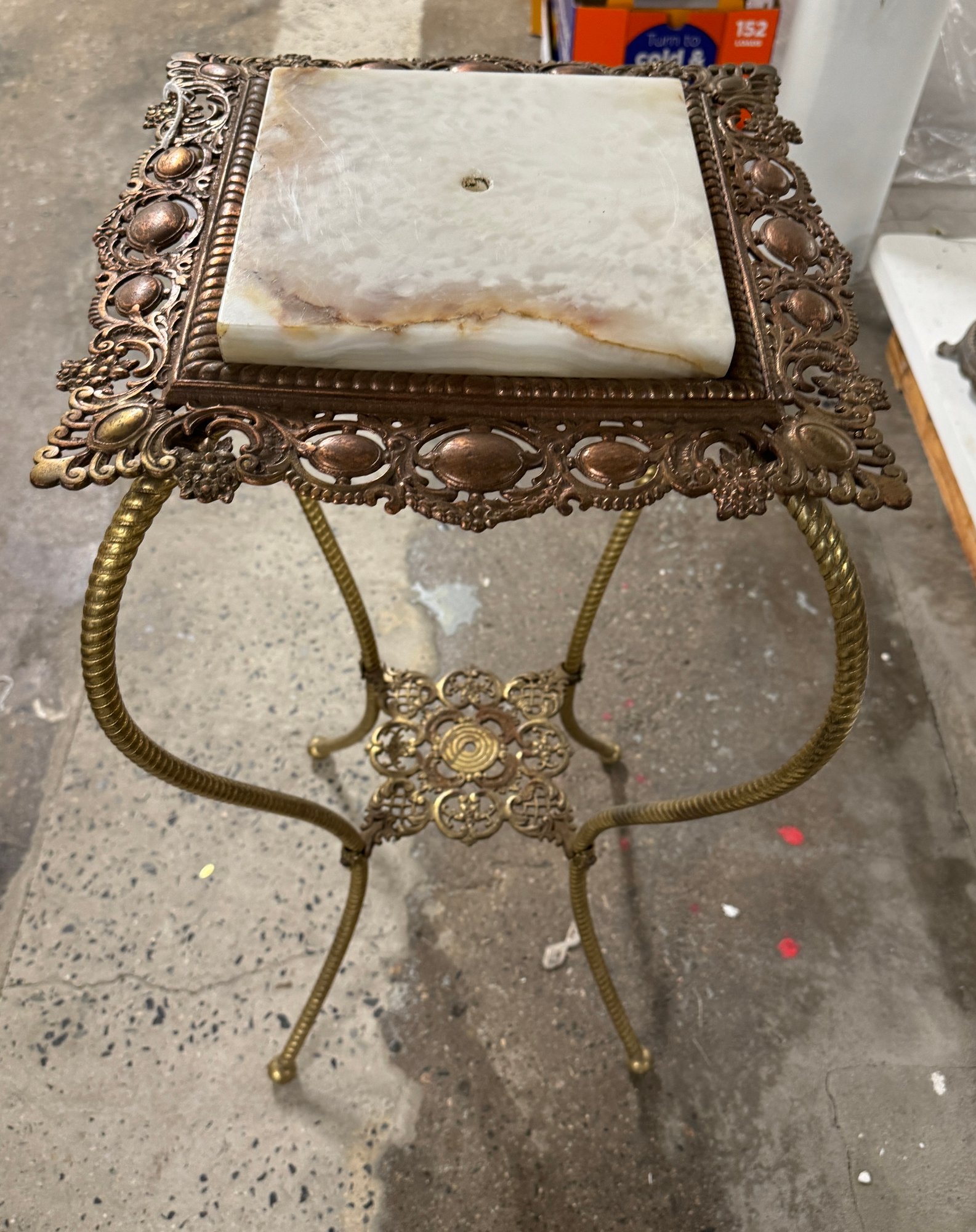 Victorian Brass & Marble Table Stand with a hole drilled for lamp. It measures 13" x 13" x 29".