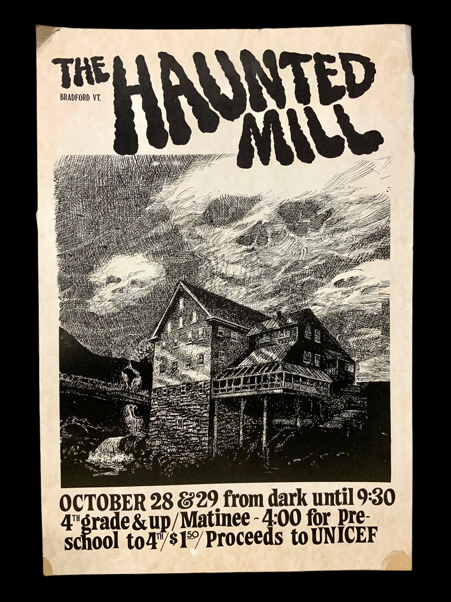 Vintage Bradford VT Haunted Mill Poster, measures 21.5 x 14 inches. Circa 1970s
