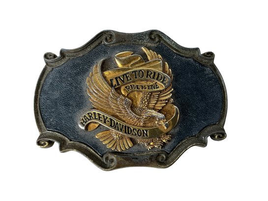 Vintage 1978 Harley Davidson Live To Ride Ride To Live Brass Belt Buckle Made By Raintree. In good used condition. It is approx. 3.5” by 2.5”.