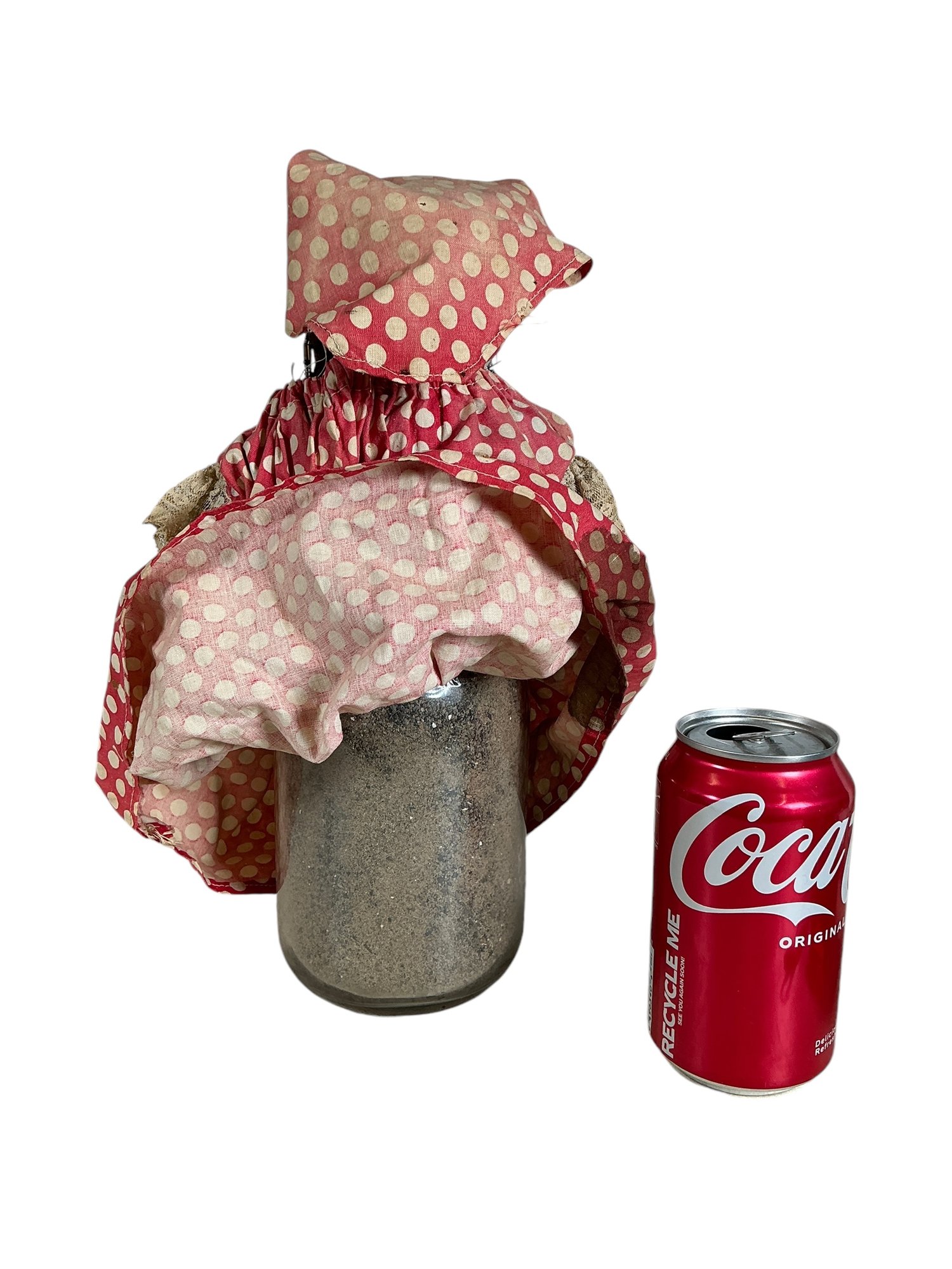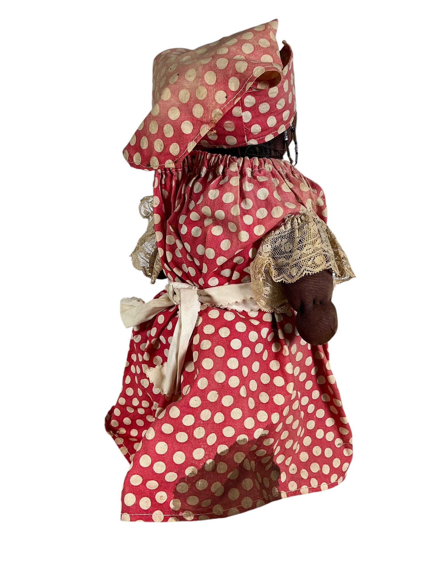 Vintage African American Milk Bottle Doll. Some fading and a stain on the rear of the skirt. It is approx. 12” tall.