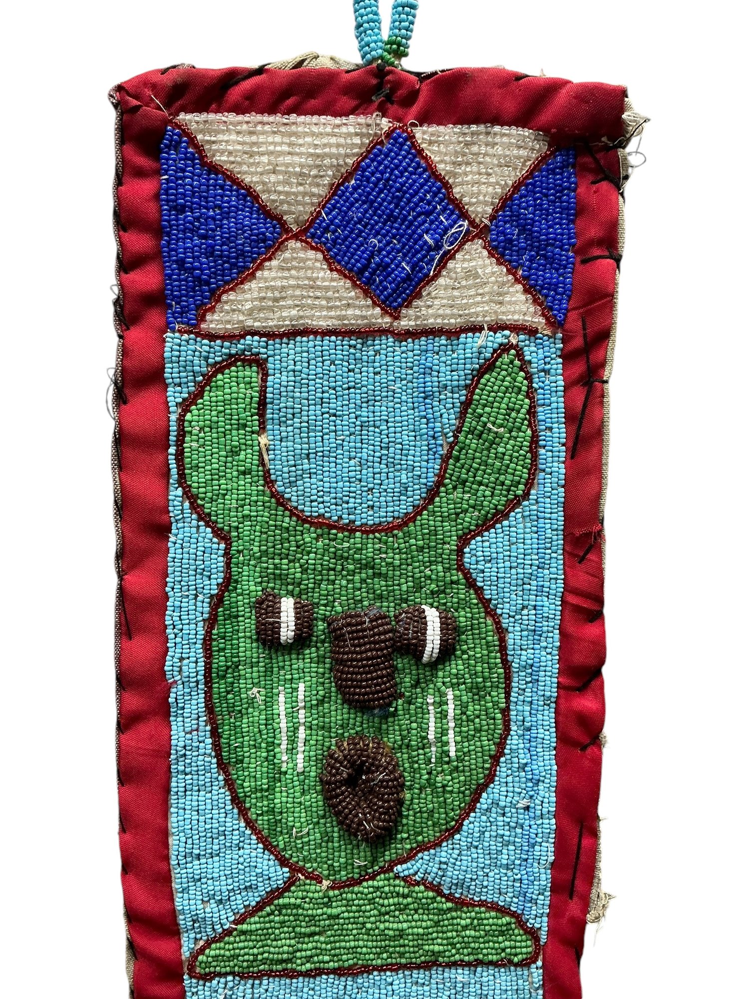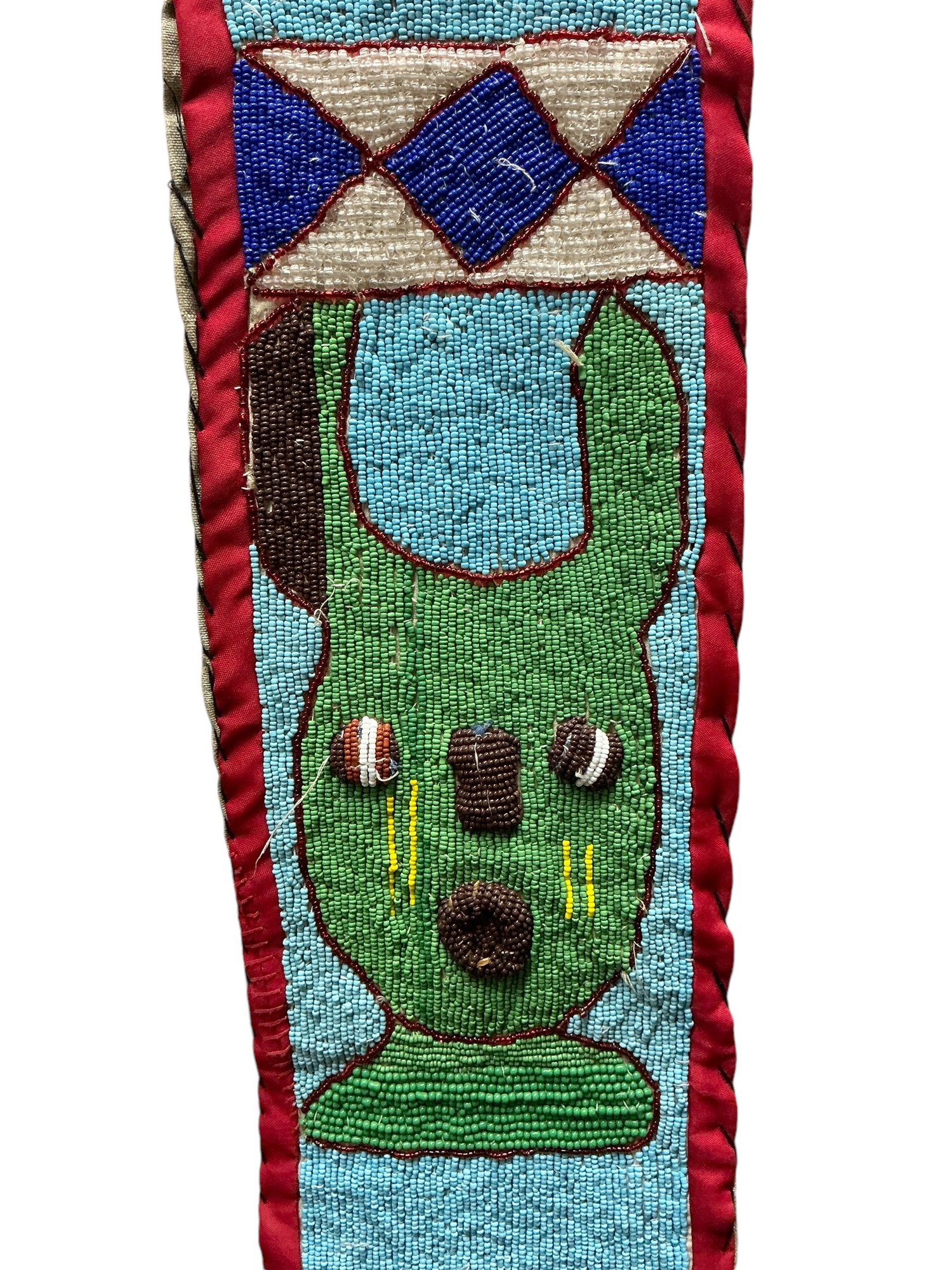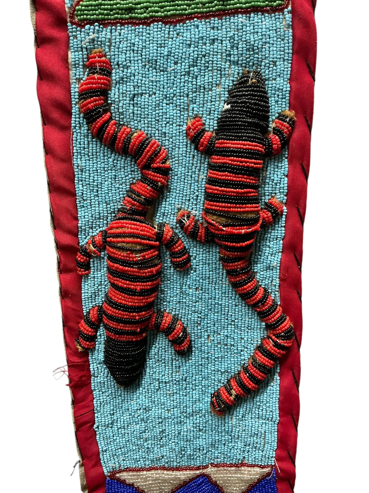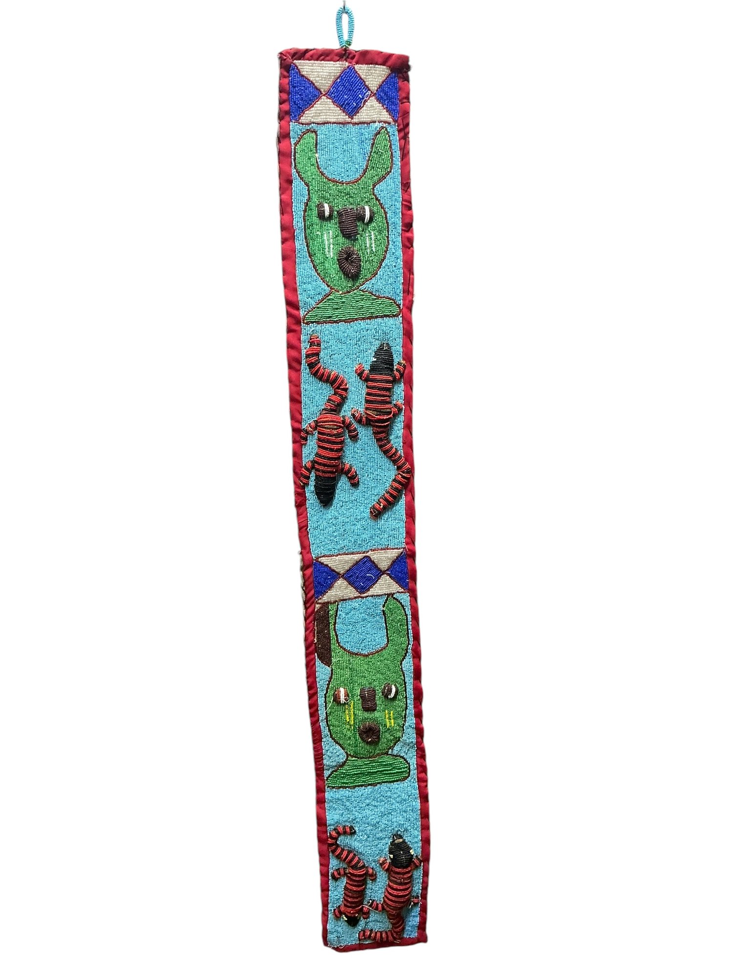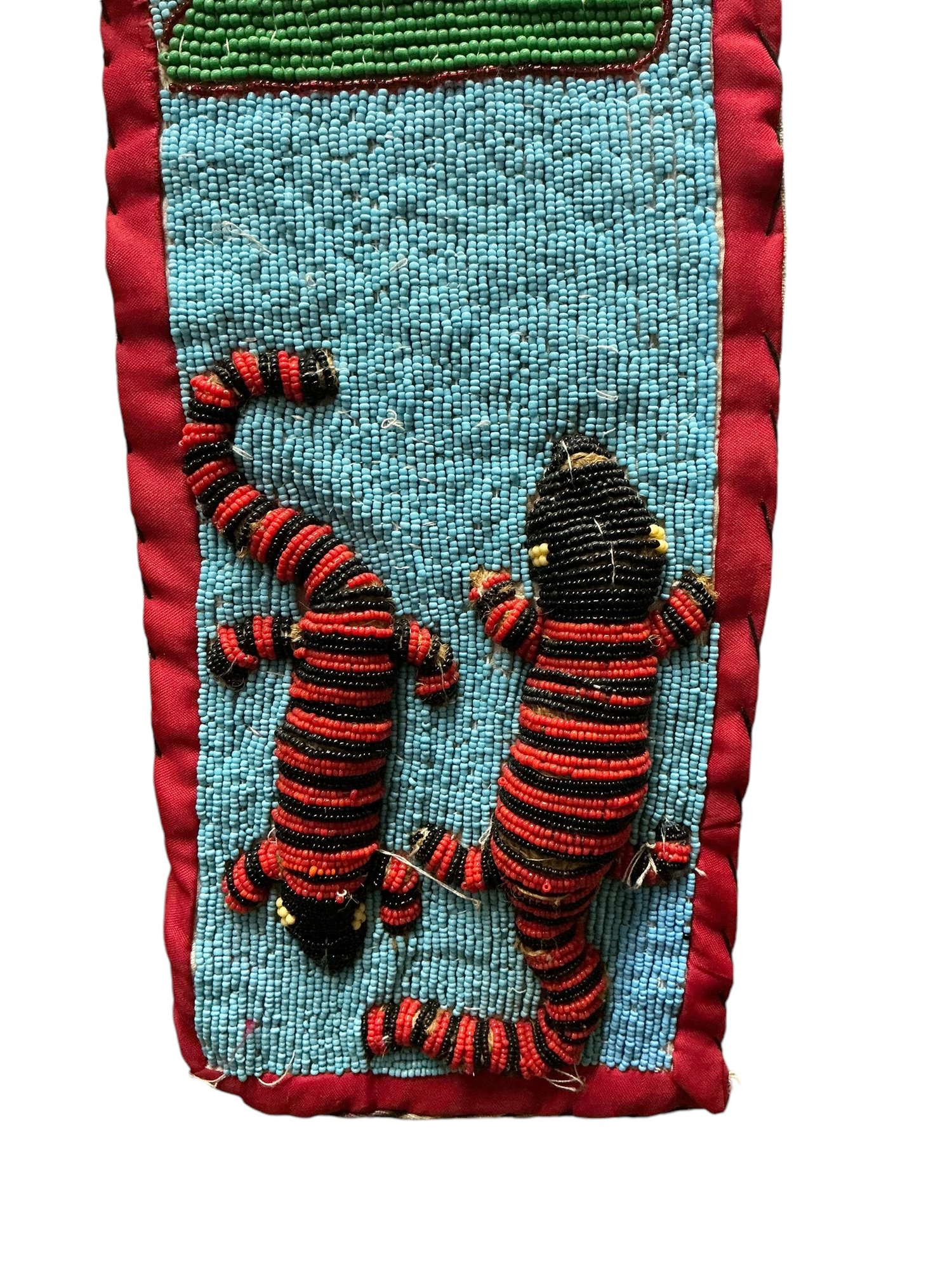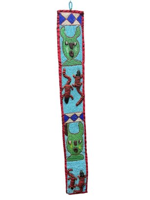 Vintage African Yoruba Beaded Sash With Lizards And Faces. In good used condition with some minor wear and some beads missing, please see photos. It is approx. 49” by 6.25.”