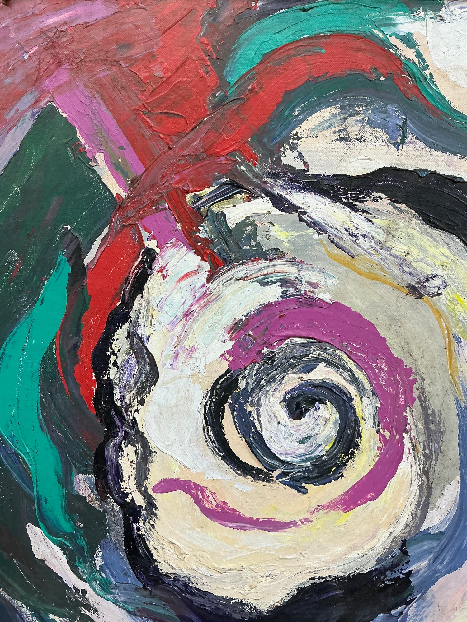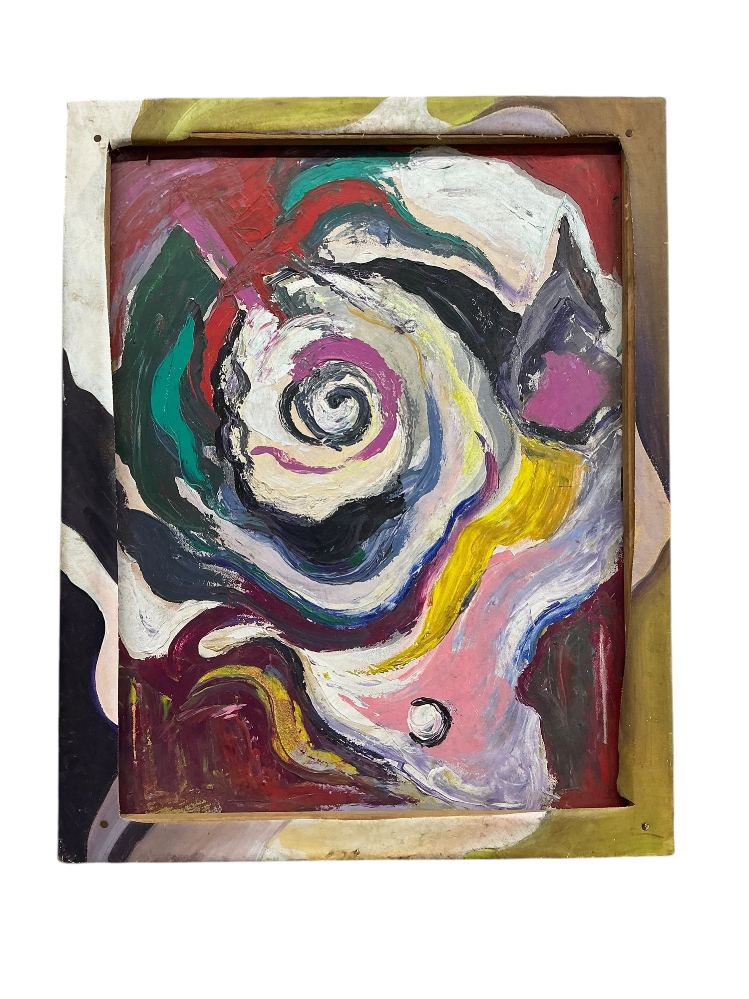 Vintage Artist Unknown Abstract Oil On Canvas Painting Outsider Art. In good condition. Frame size is approx. 29.5” by 24.”