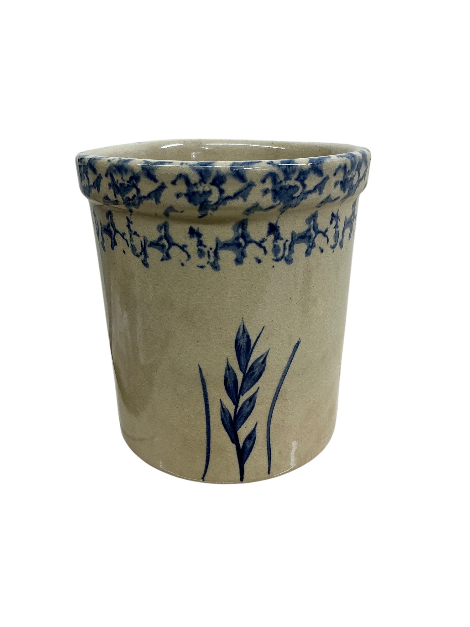 Vintage Blue Spongeware Roseville Ohio RRP Pottery Small Crock. In very good condition. It is approx. 5.25” tall.