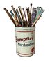Vintage Campfire Marshmallows Tin Filled With Old And Vintage Knitting Needles. All in good used condition, some pairs may not be complete, please see photos. Great as a display. The tin itself is approx. 8” tall and has a diameter of 5.75”.