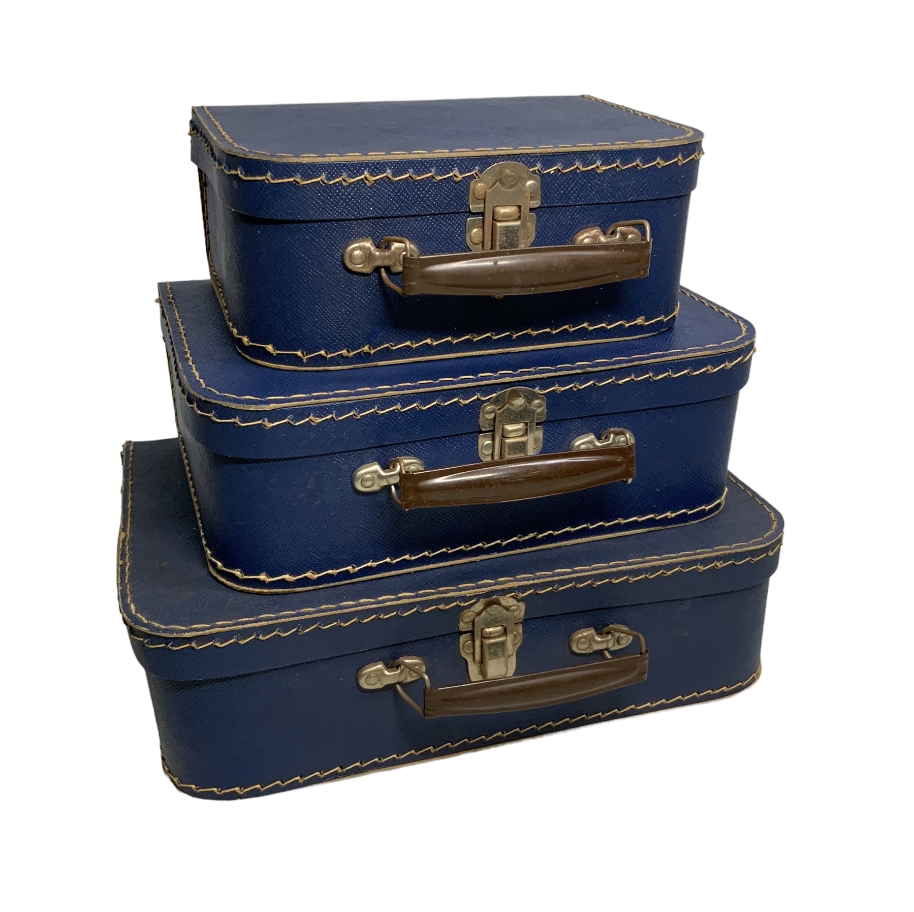Vintage Czechoslovakian Nesting Set Of Paper Luggage. In good condition with some minor wear and one small chip, please see photos. Largest is 12” by 8” by 3.5”.