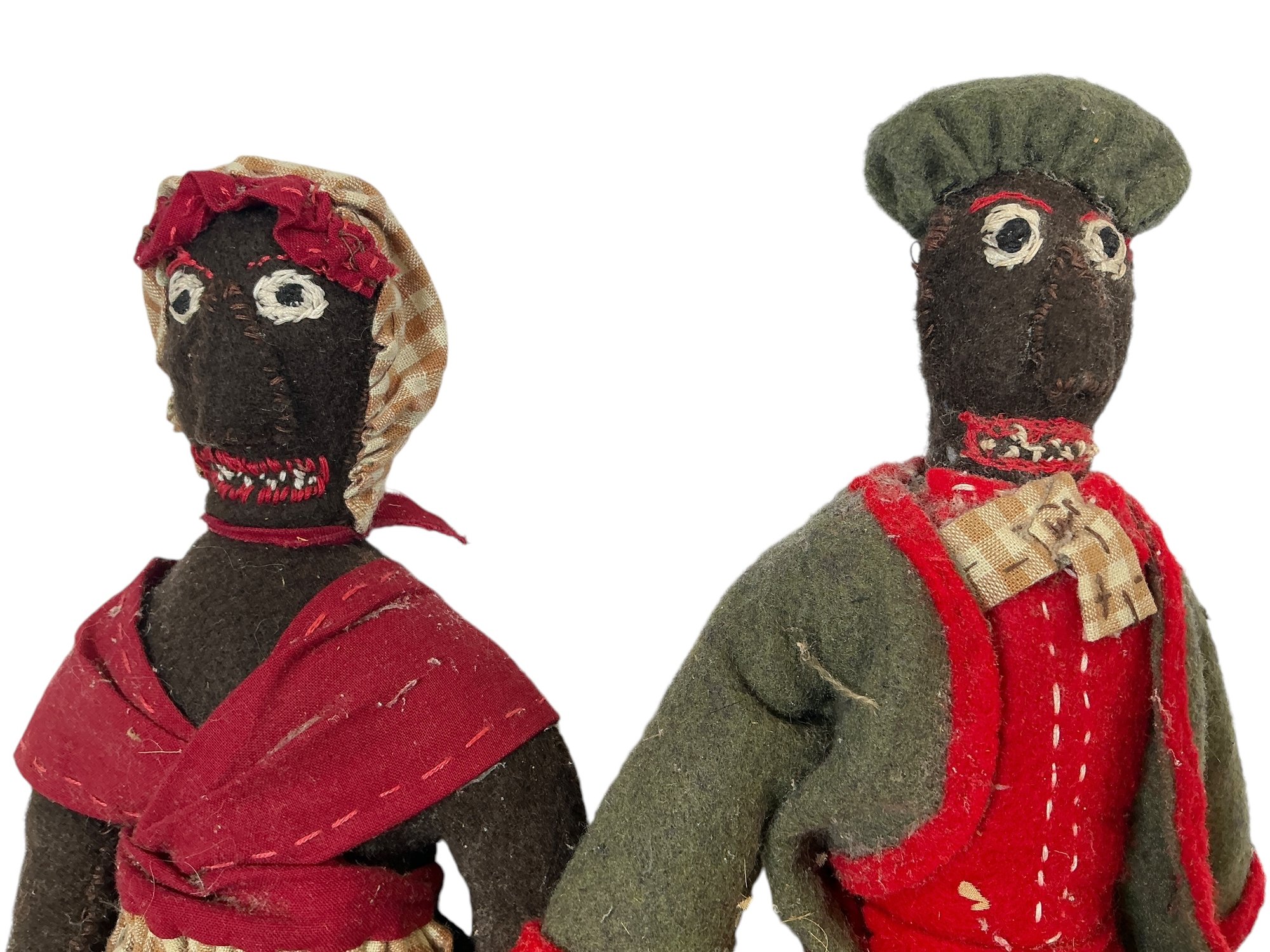 Vintage Folk Art African American Dolls Husband And Wife. In good condition. Each is approx. 13.5” tall.
