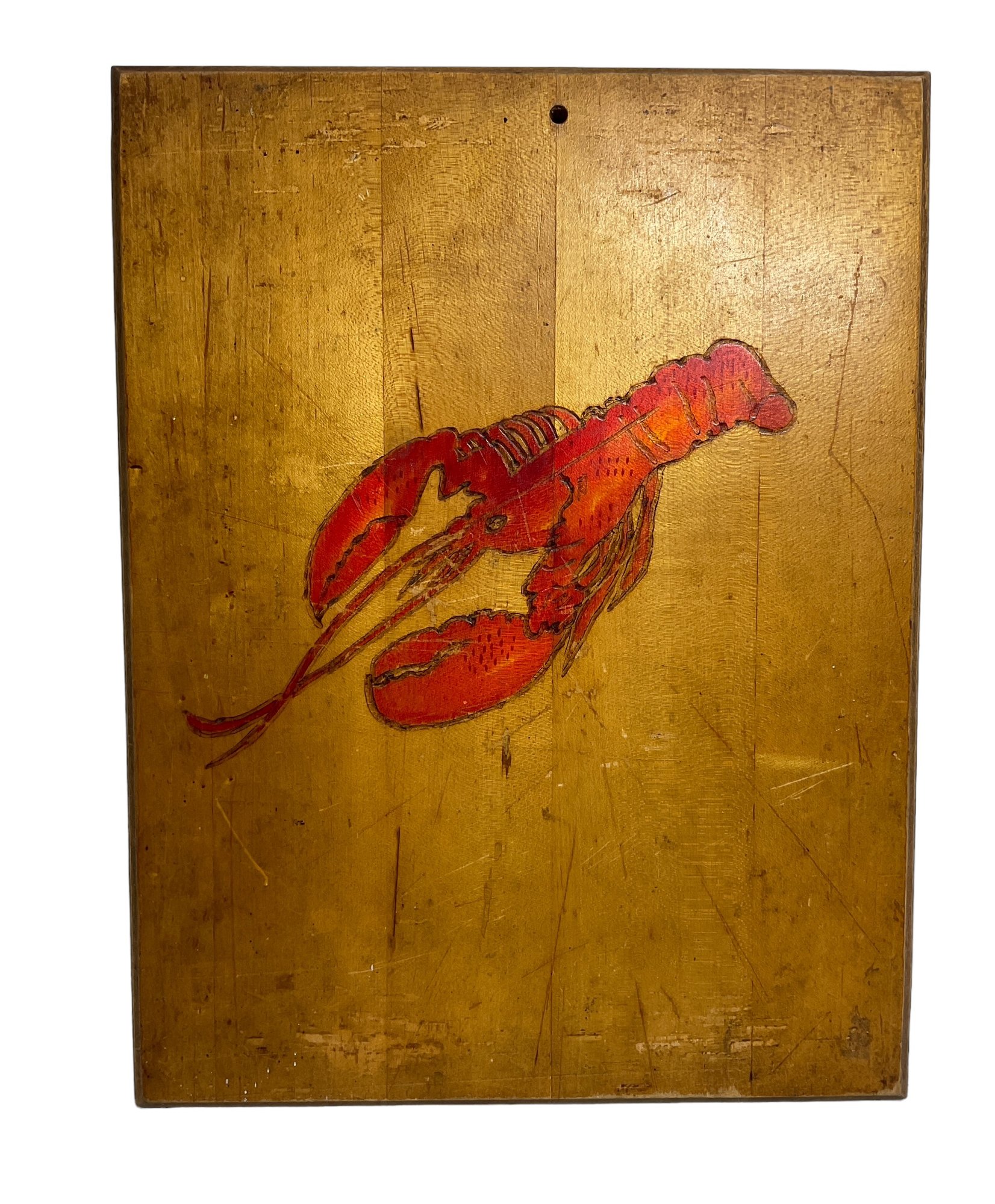 Vintage Folk Art Carved Wood Panel With Lobster, Decorative Cutting Board. In good used condition. It is approx. 15” by 11.5”.