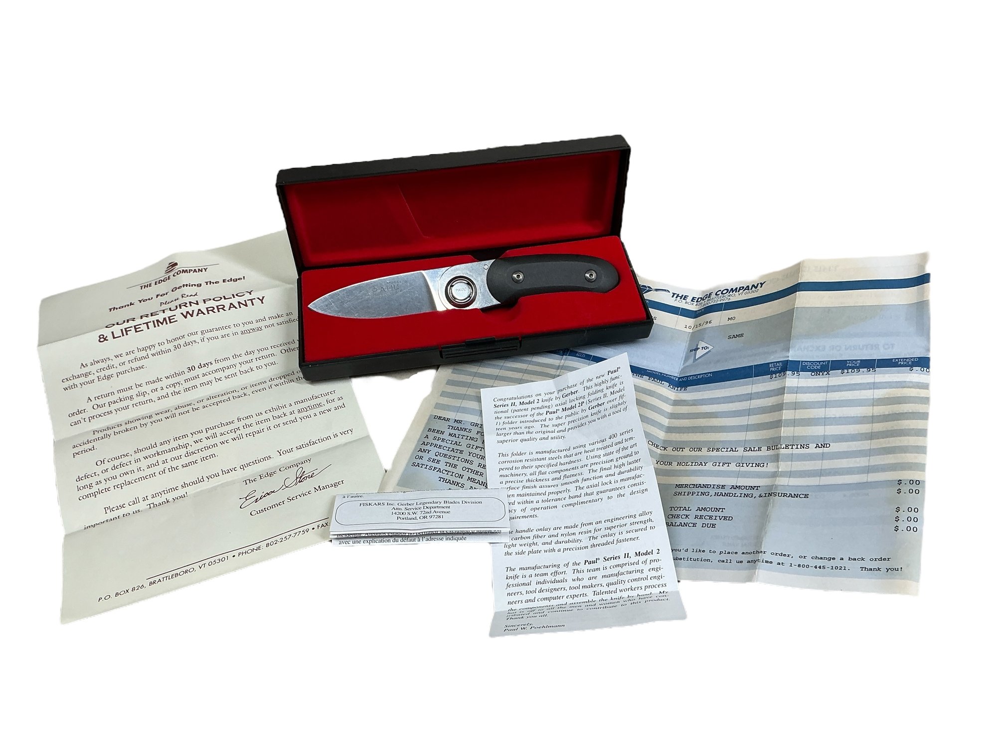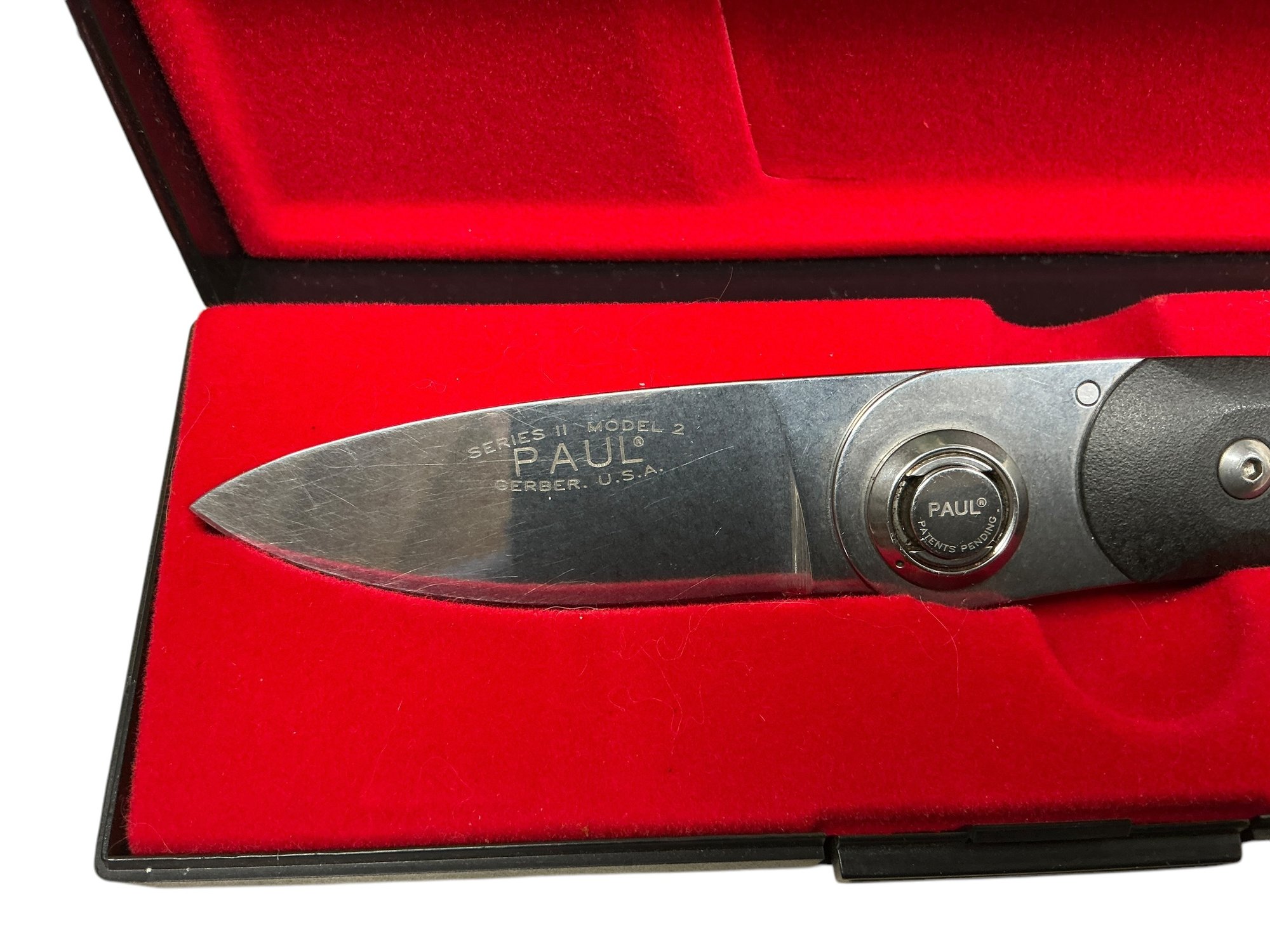 Vintage Gerber Legendary Blades Paul Series II Model 2 Folding Pocket Knife. In good used condition with obvious wear. Fully open the knife is approx. 6 3/8” long.