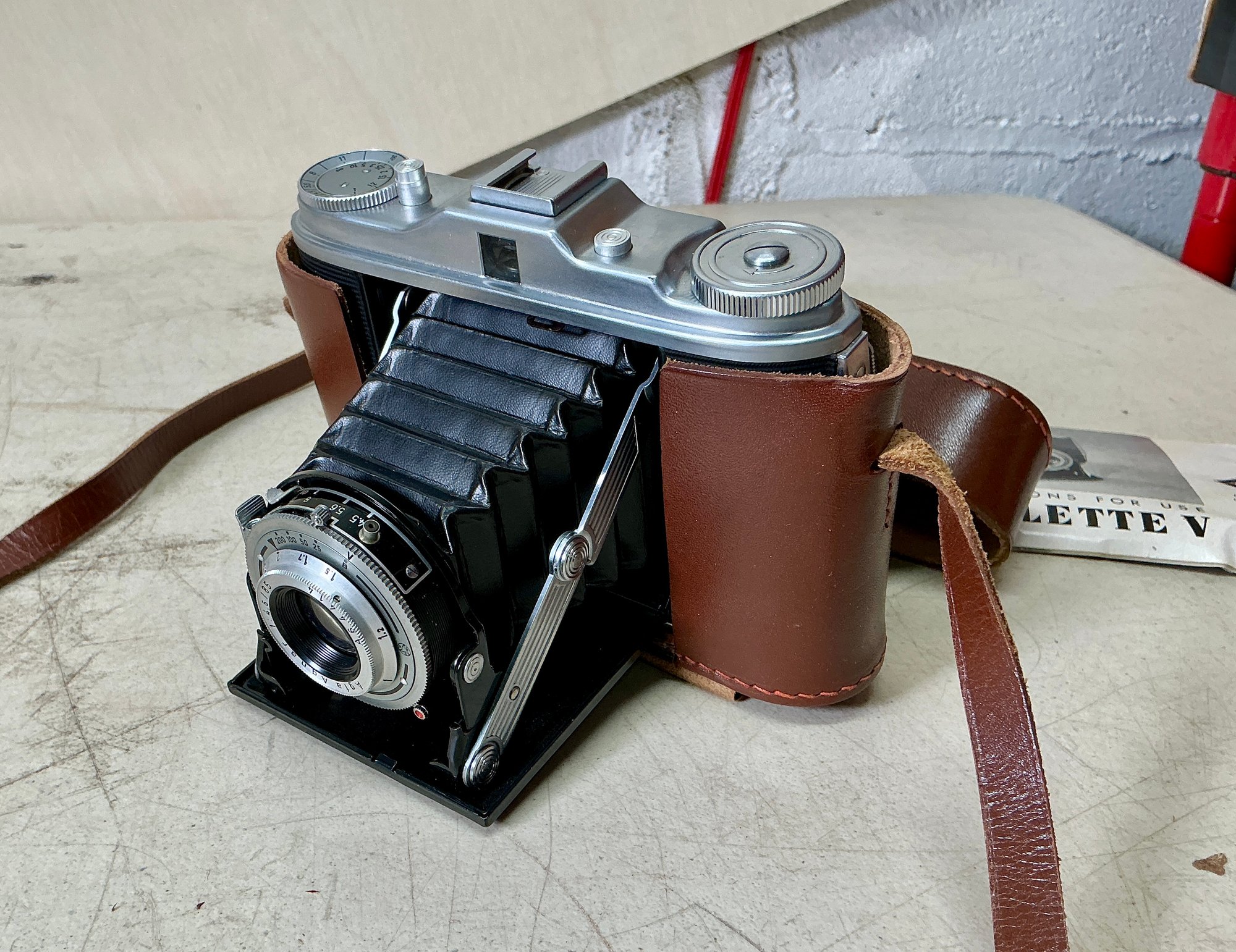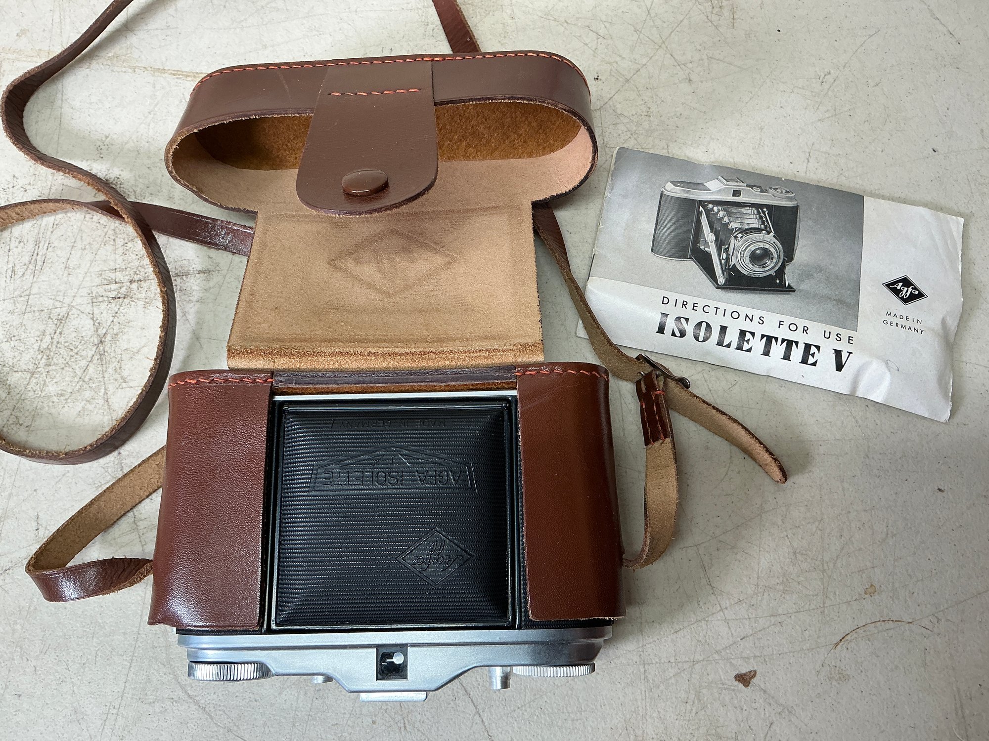 Vintage German Agfa Camera Isolette V In Leather Case. Seems to be in excellent condition, but untested. Incudes an instruction booklet in English. Camera is approx. 6”x4.5”. See photos for details.