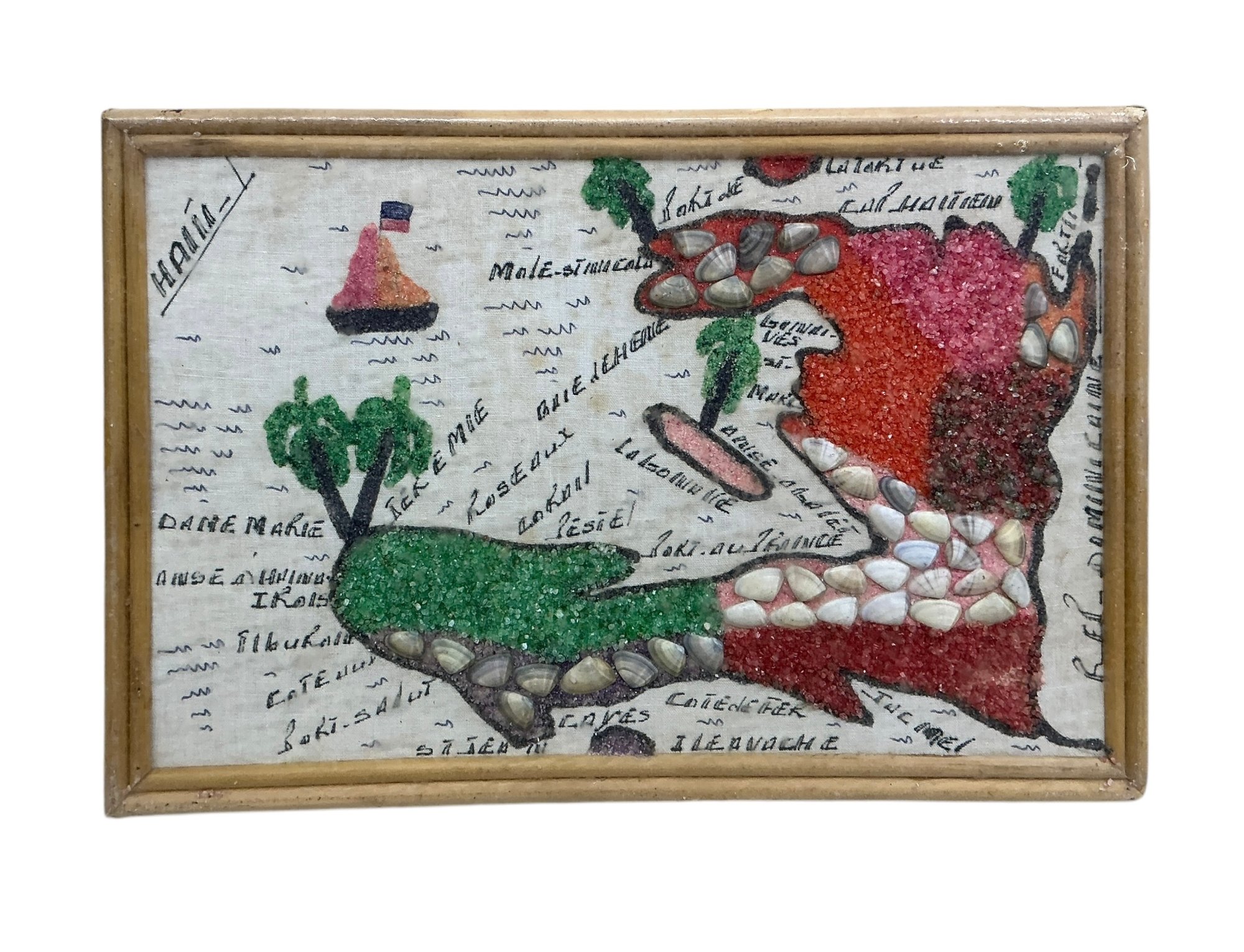 Vintage Haitian Folk Art Hand Made Map. In good used condition. It is approx. 8” by 12.”