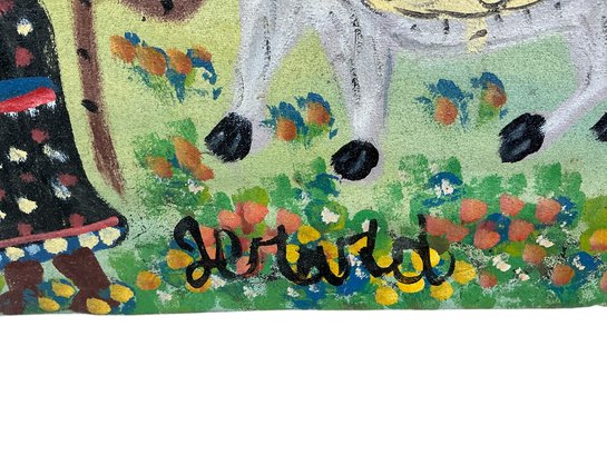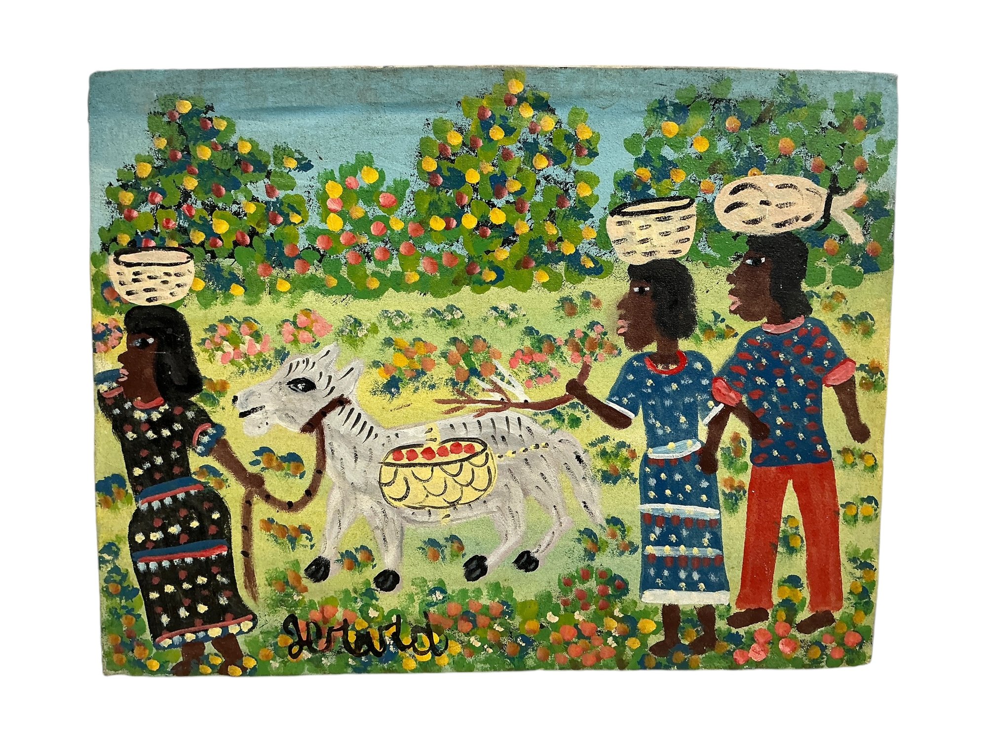 Vintage Haitian Painting On Canvas Of Fruit Harvest Signed Jerard. It is approx. 12” by 16.”