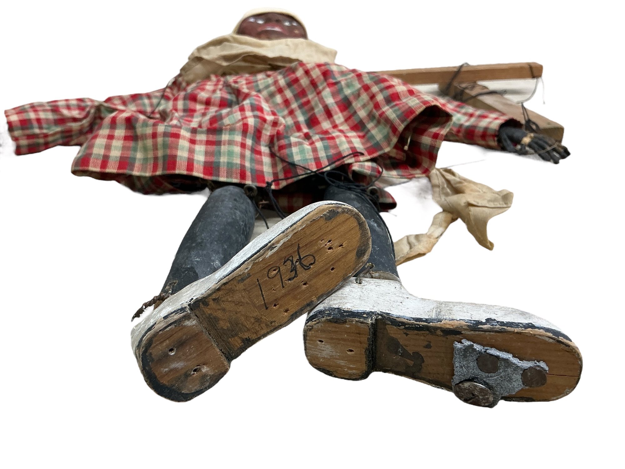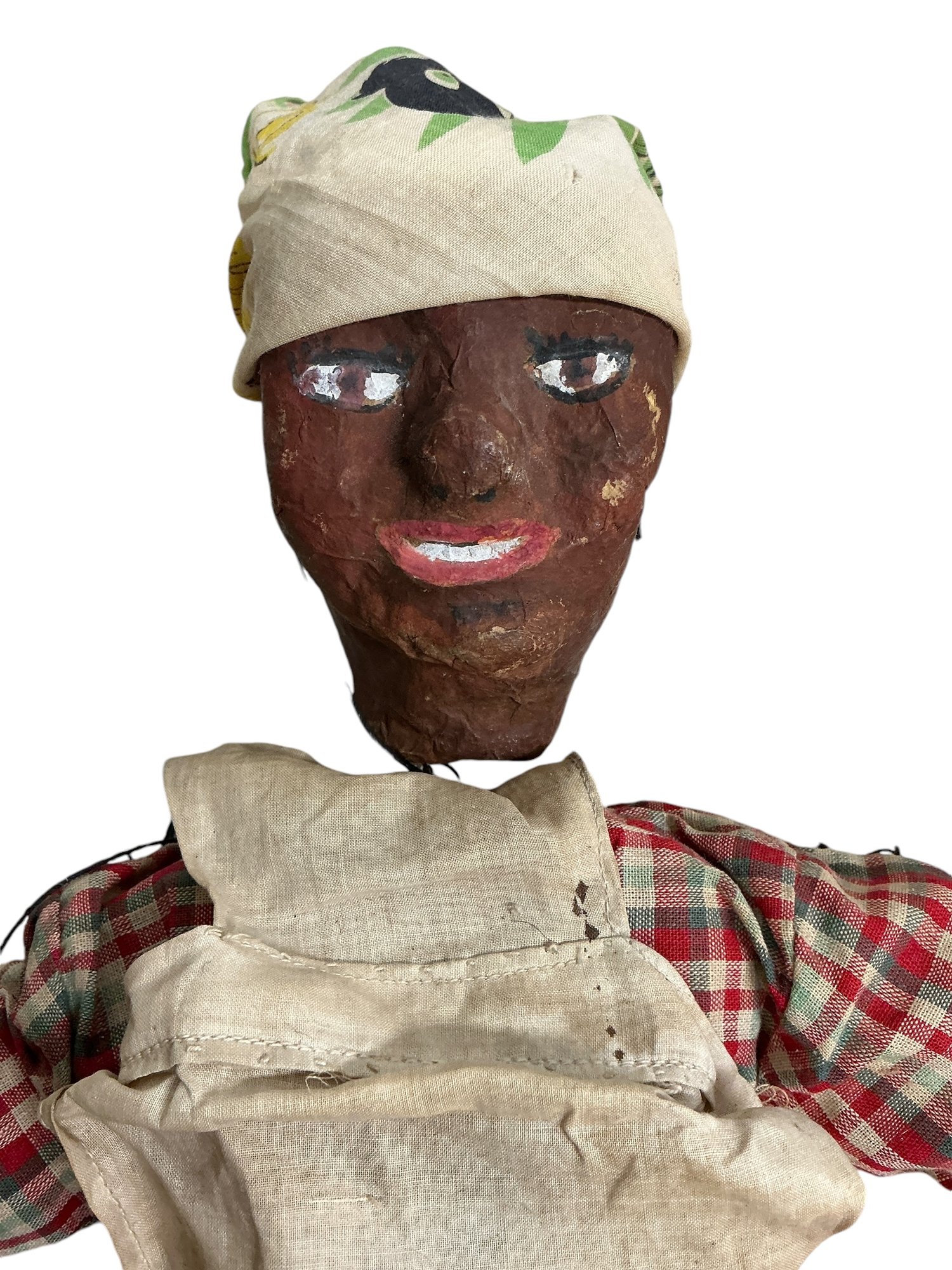 Vintage Homemade Marionette Wood Cloth And Papier Mache. In fair used condition. It is approx. 18” tall.
