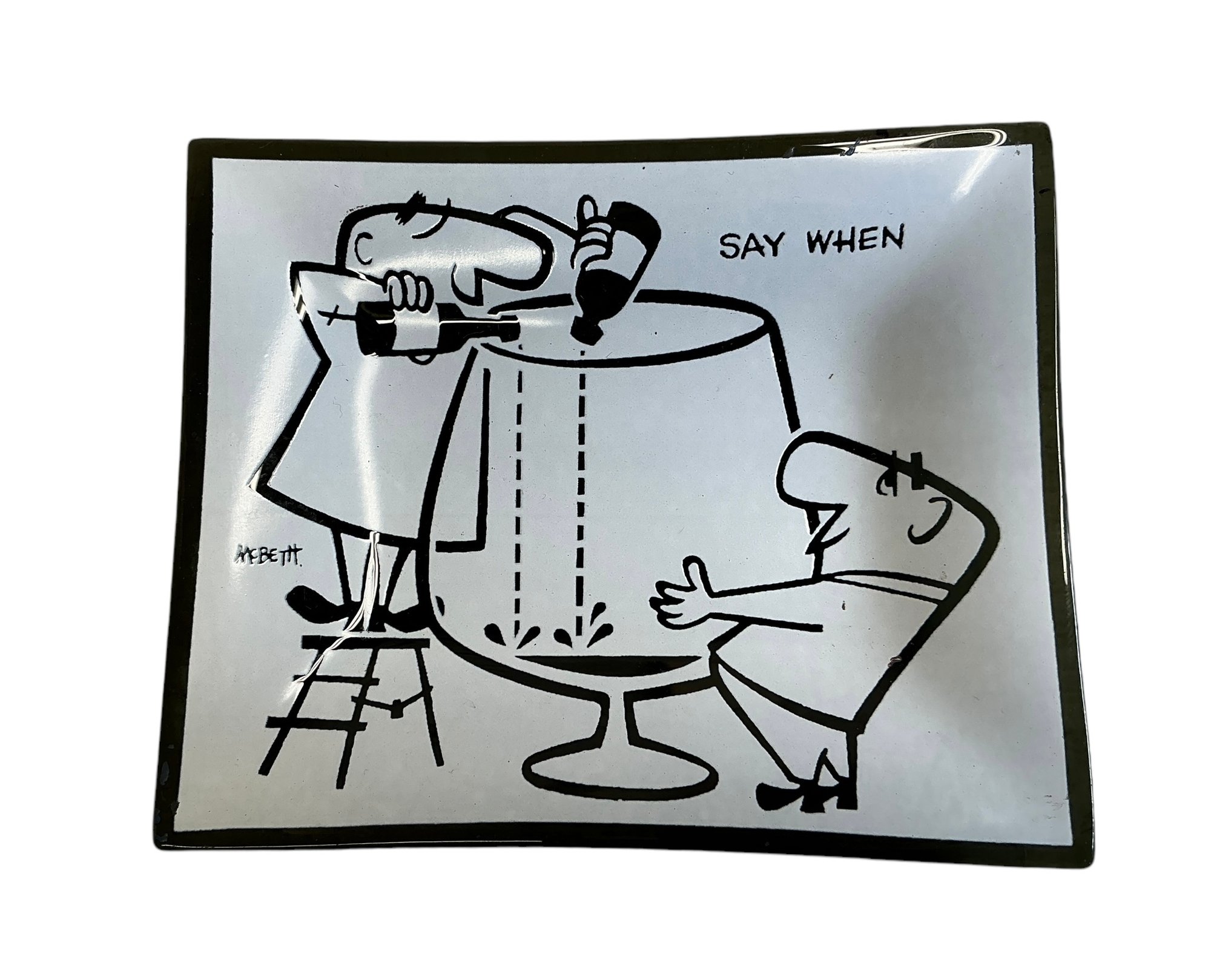 Vintage Kitsch McBeth Glass Ashtray Say When. In good used condition. It is approx. 4.75” by 3.75.”