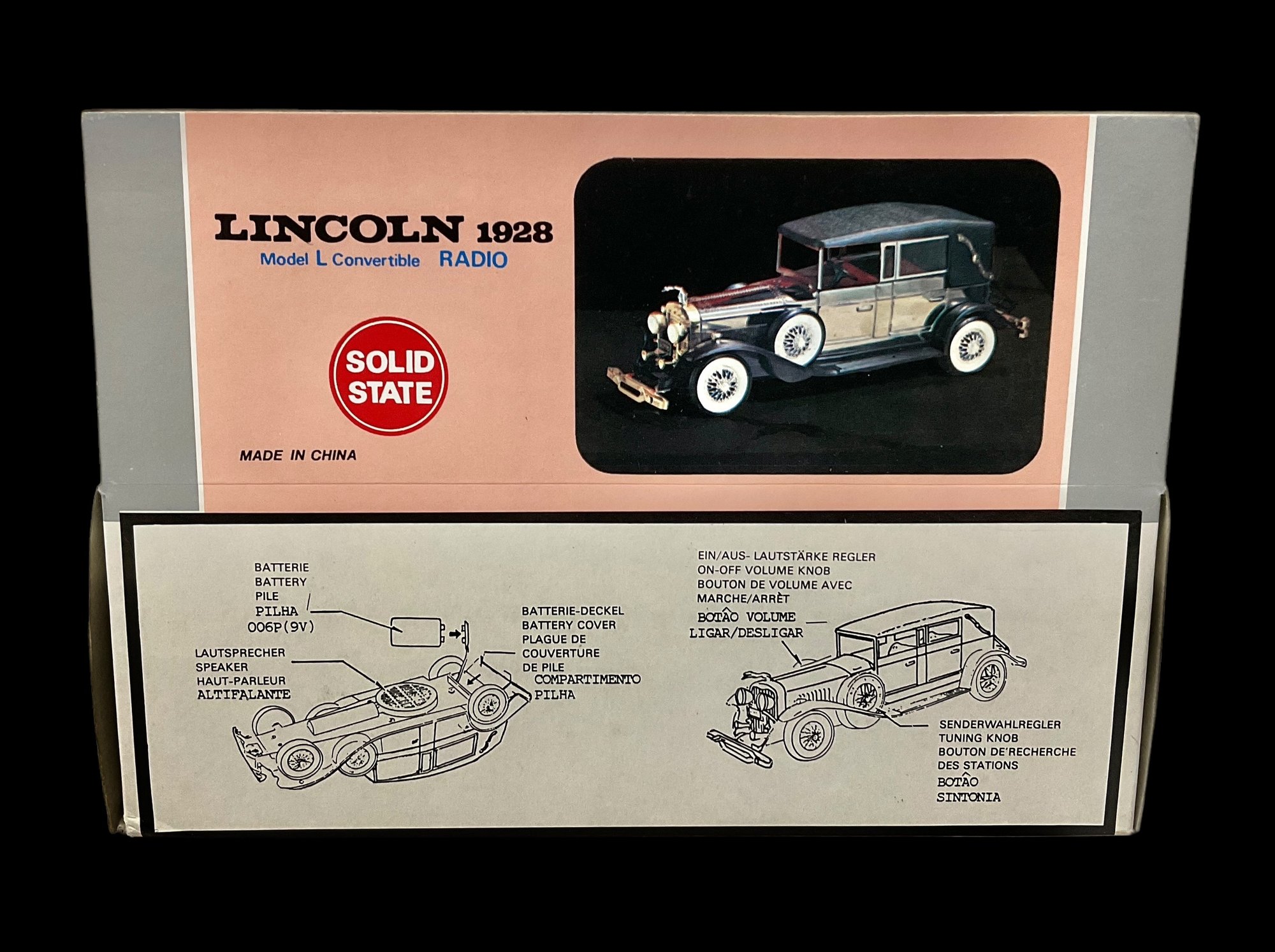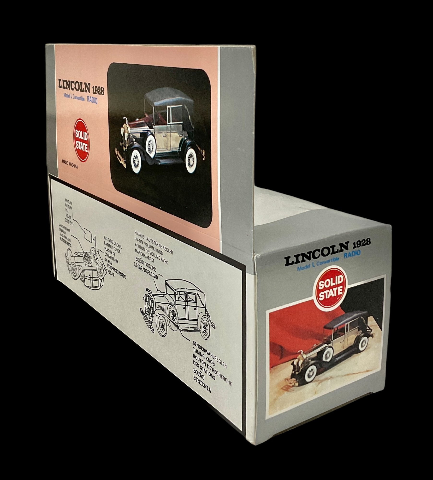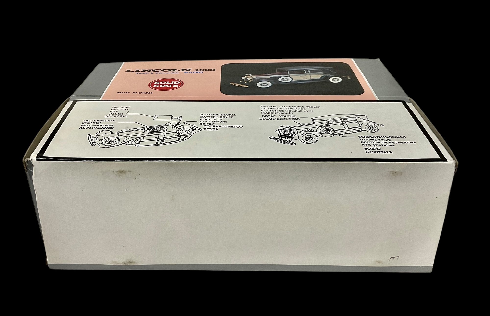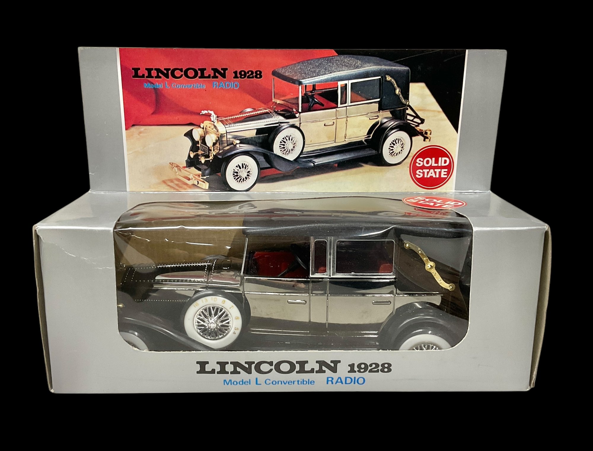 Vintage Lincoln 1928 Model L Convertible Radio. Comes in original box. Includes instructions on back of box on how to use radio. Box measures approximately 10.5” long and 7.25” tall. Untested.