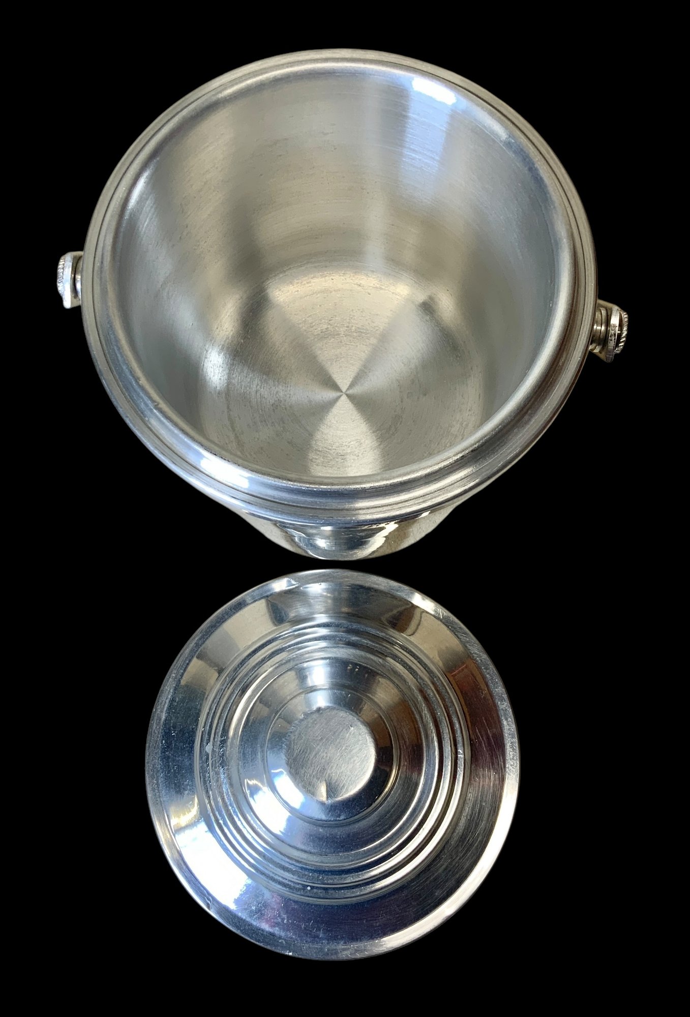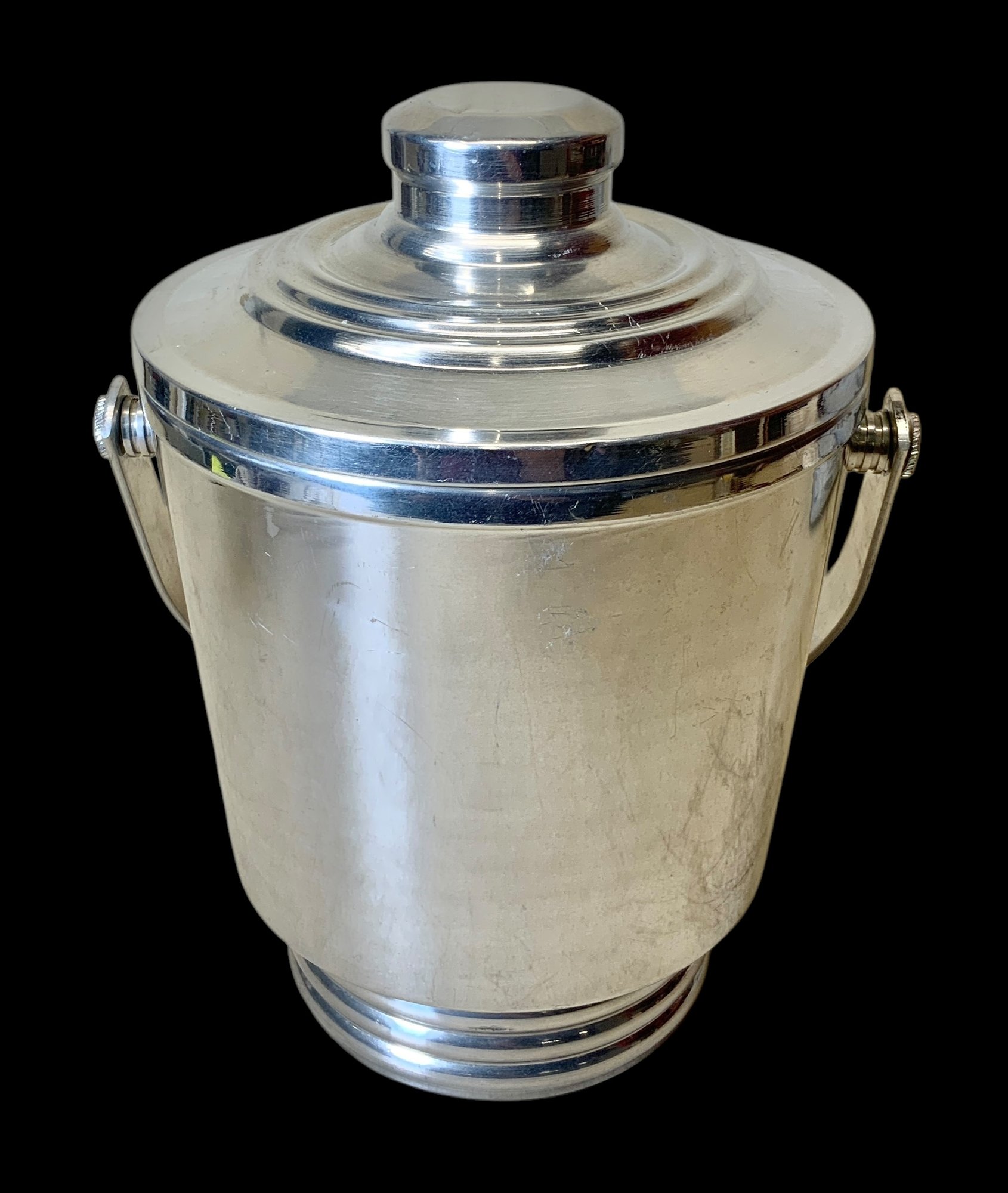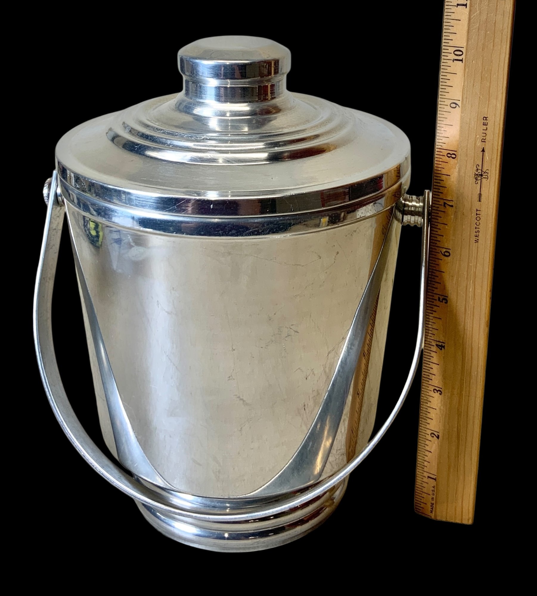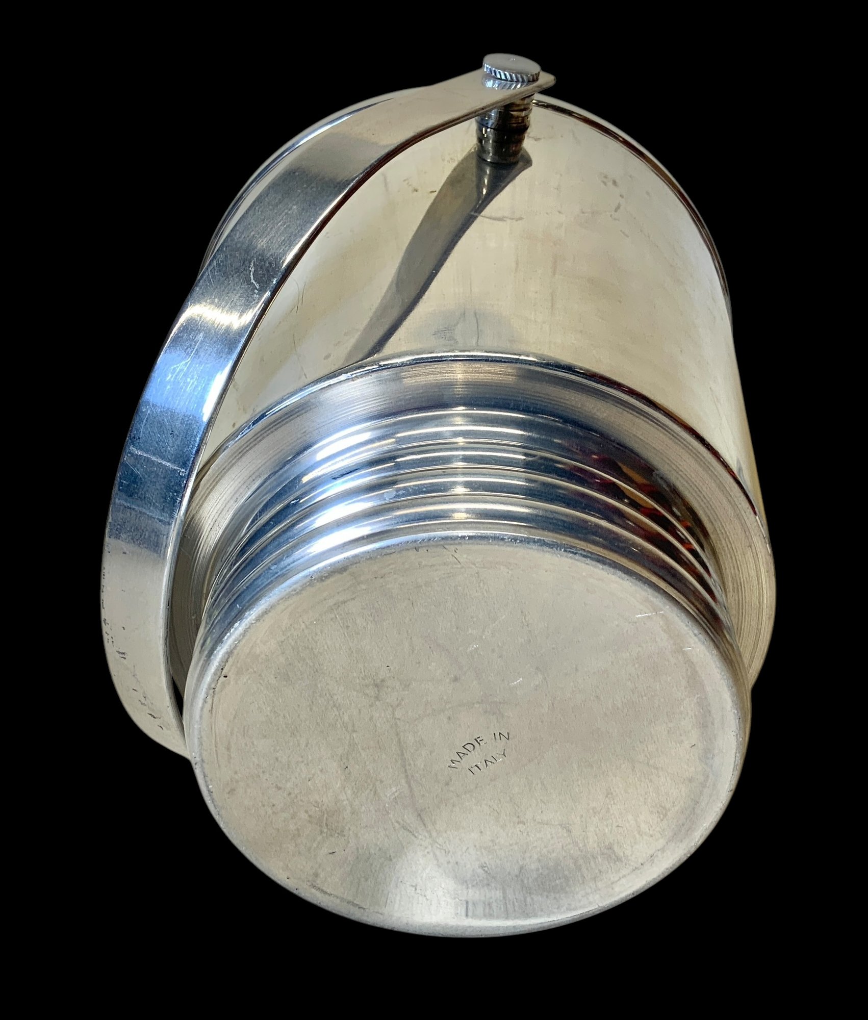 Vintage Made In Italy Ice Bucket With Handle. Ice bucket is made out of aluminum and shows some signs of general wear. Says “Made In Italy” on the bottom. Please see photos for more details. Ice bucket measures approximately 10.25” tall with the widest diameter measuring approximately 7” long.