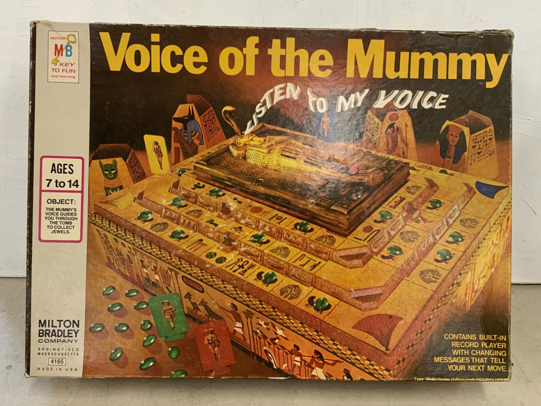 Vintage Milton Bradley Board Game Voice Of The Mummy, please see photos for condition, parts all seem to be there but we have not counted all the parts.
