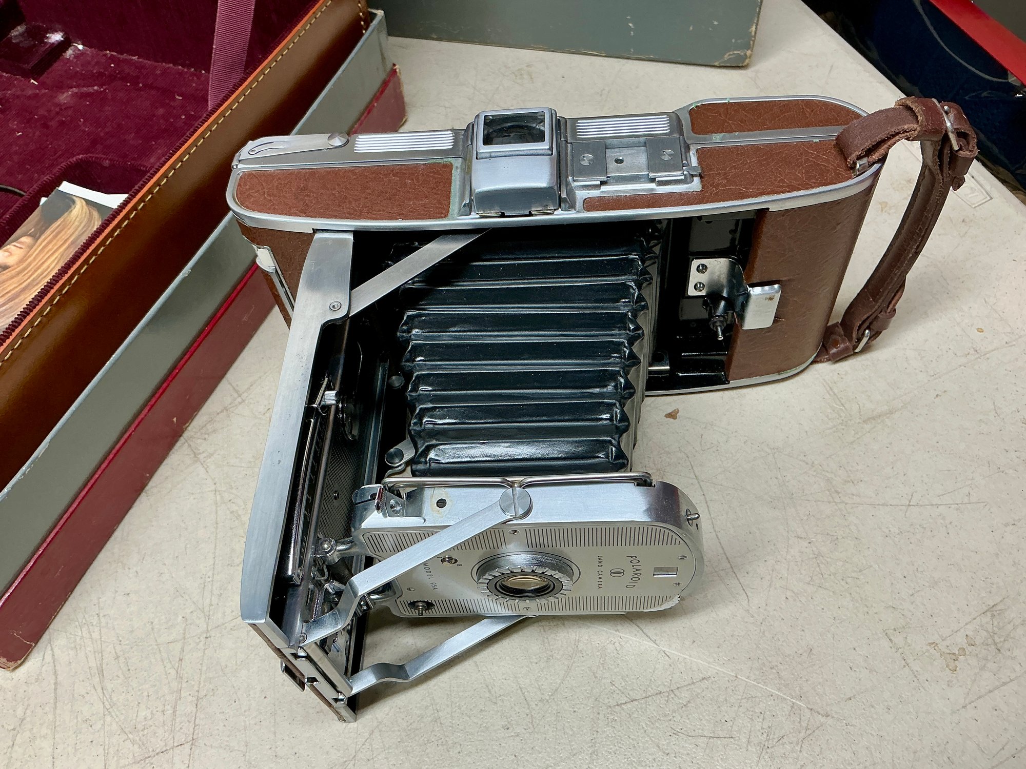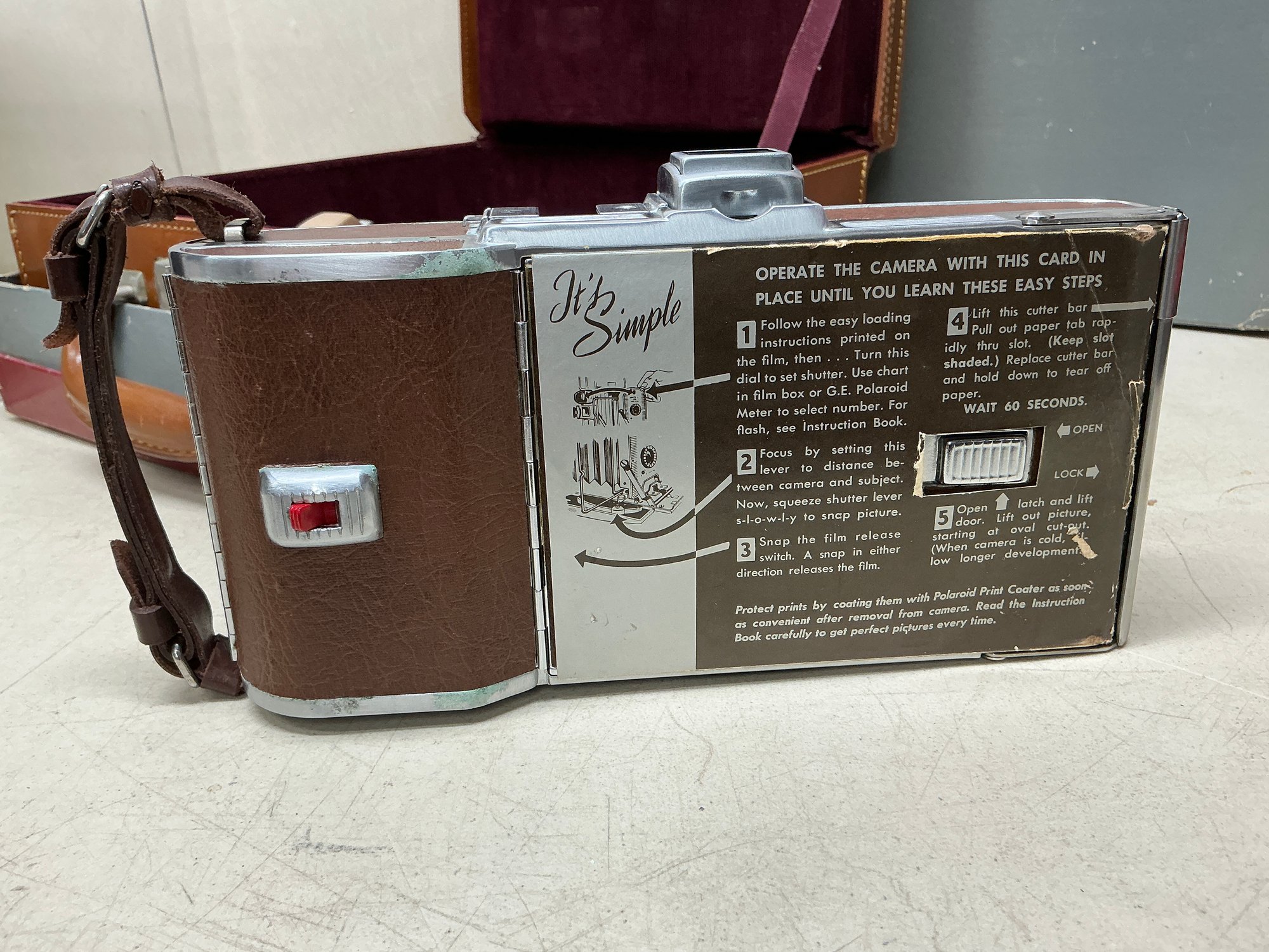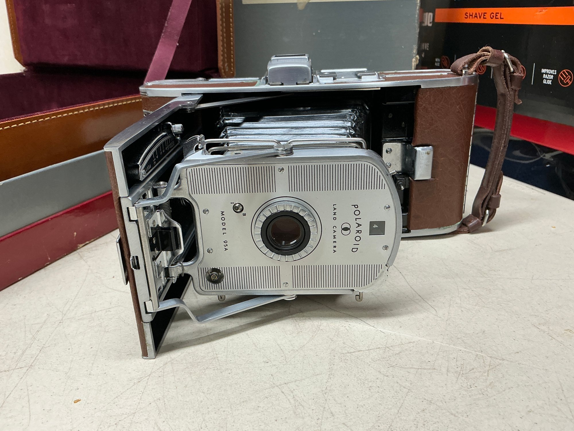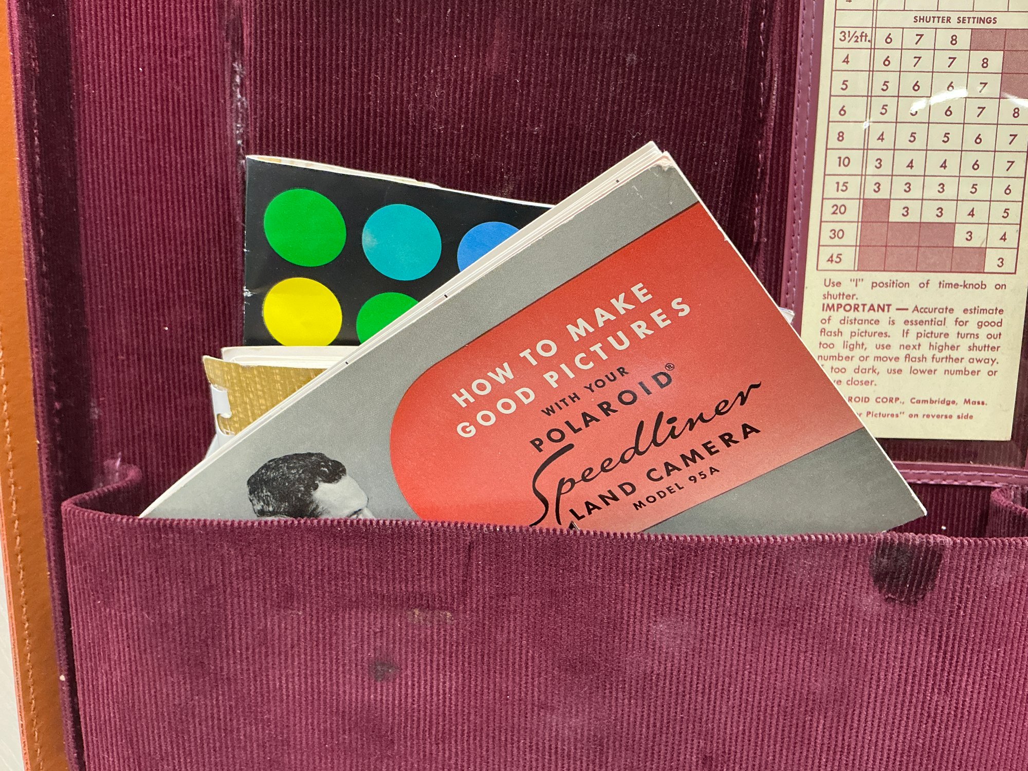 Vintage Polaroid Speedliner Land Camera Kit. Includes Leather Carrying Case, Polaroid Land Camera Model 95 A, Flash, Diffuser, Filters, Close-up Lens Kit, Etc. Comes with many instruction booklets. Excellent Condition, but untested.