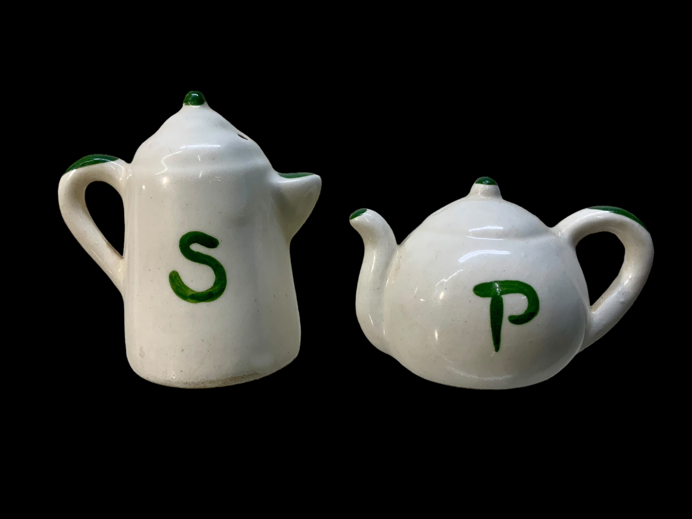 Vintage Porcelain Tea And Coffee Pot Salt And Pepper Shakers, taller is approximately 3.”
