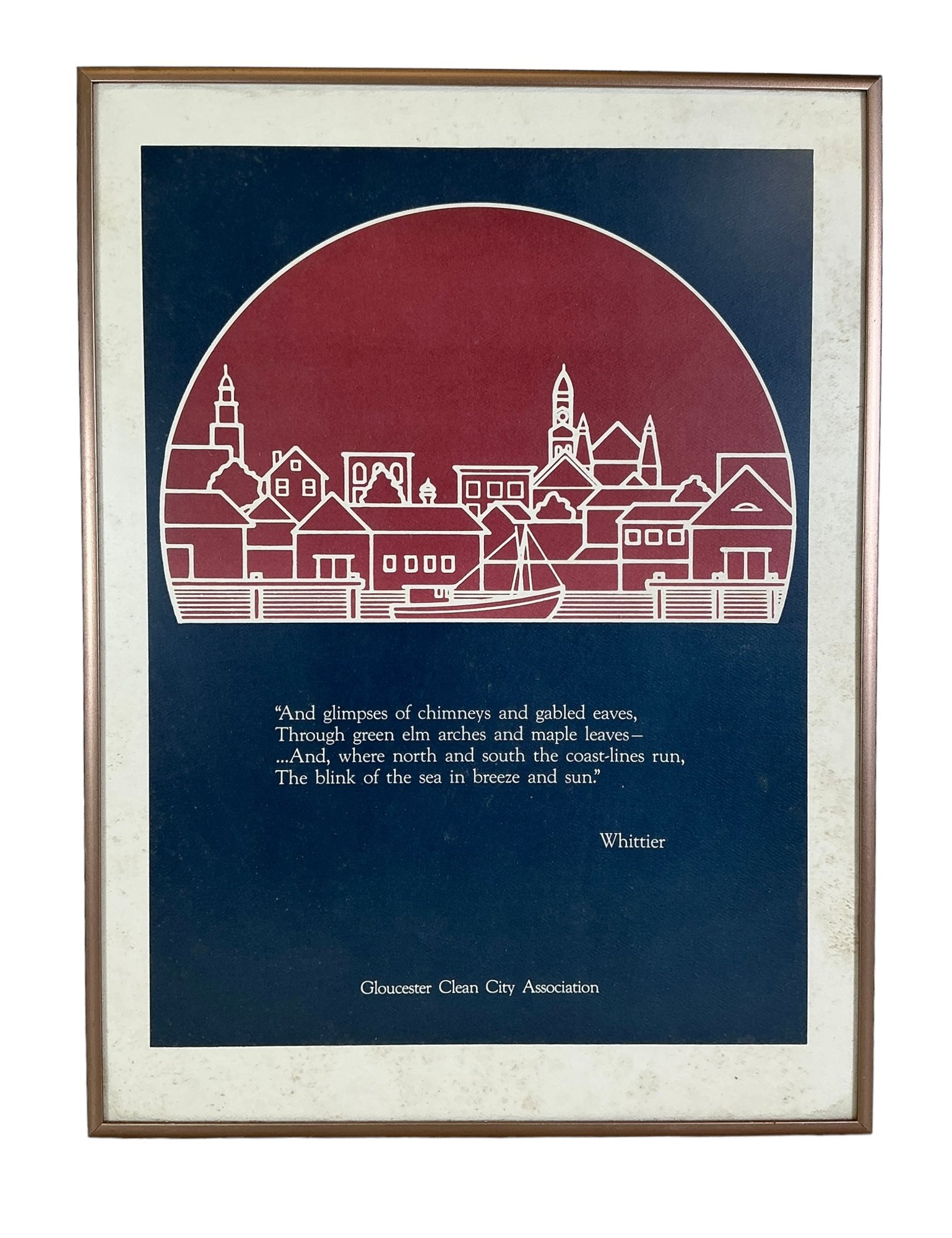 Vintage Poster For Gloucester Clean City Commission Designed By Helen Anne Lind. In good condition with some minor age stains on the white border, please see photos. Frame size is approx. 17.75” by 13”.