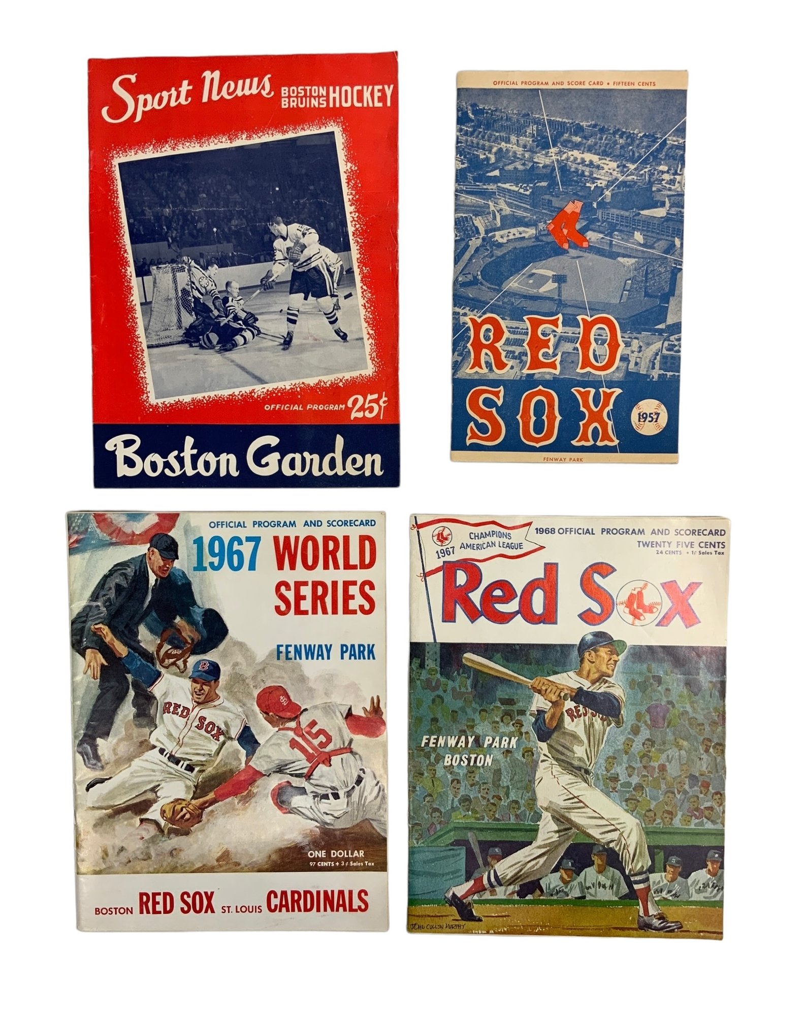 Vintage Red Sox Baseball Programs 1957 And 1967 World Series Fenway Park And Boston Bruins Program. All in good used condition, please see photos. Largest is 11” by 8.25”.