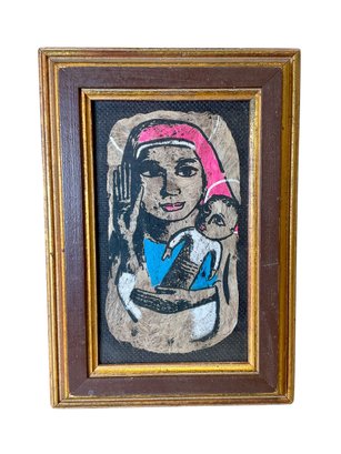 Vintage Silk Screen Print Of Madonna And Child Mid Century, site size measures 8.5” x 5.”