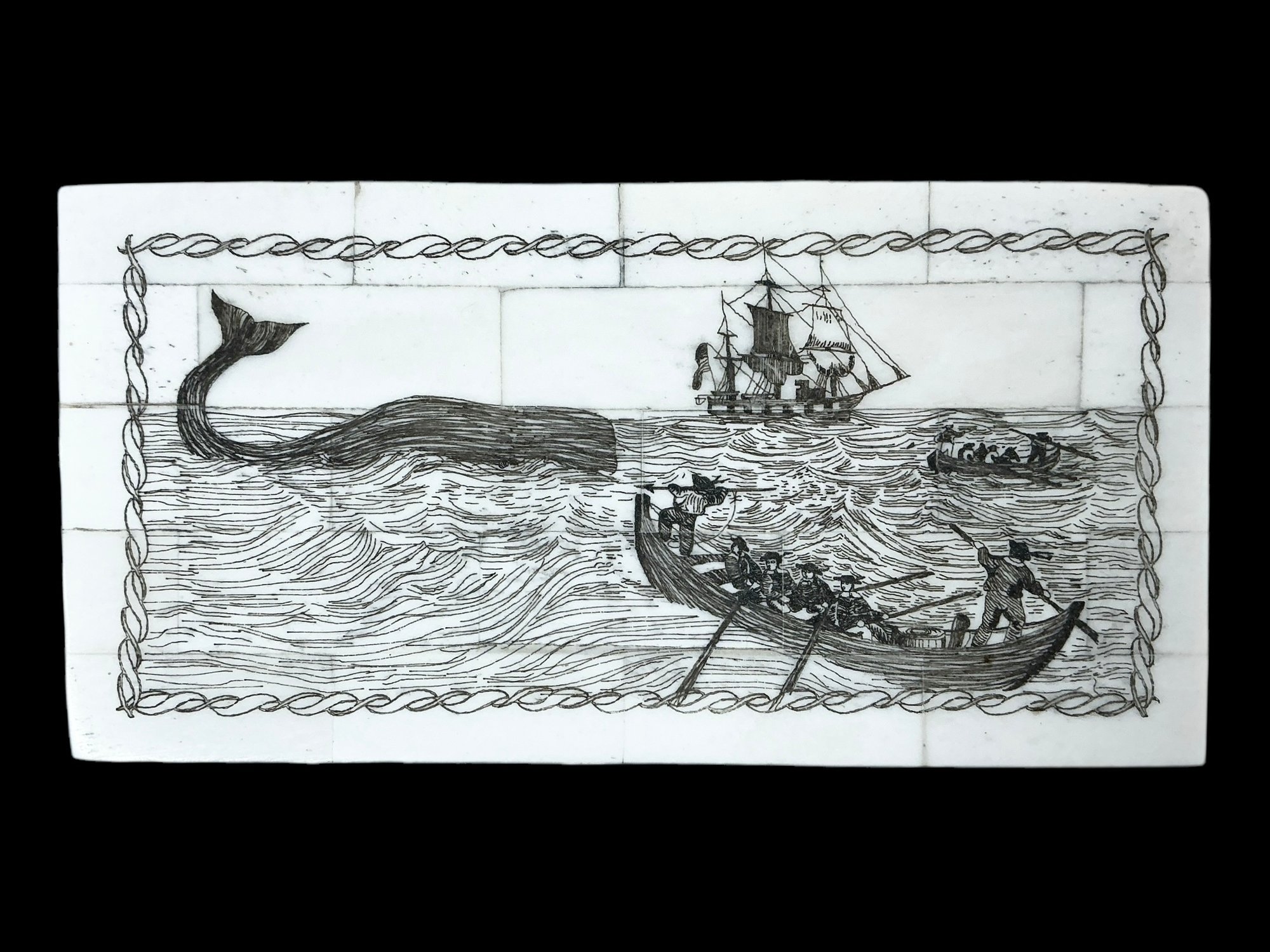Vintage Small Box With Traditional Whaling Scene Decoration. Made from some kind of man made resin material. In good used condition. It is approx. 6.25” by 3.25” by 1.5.”