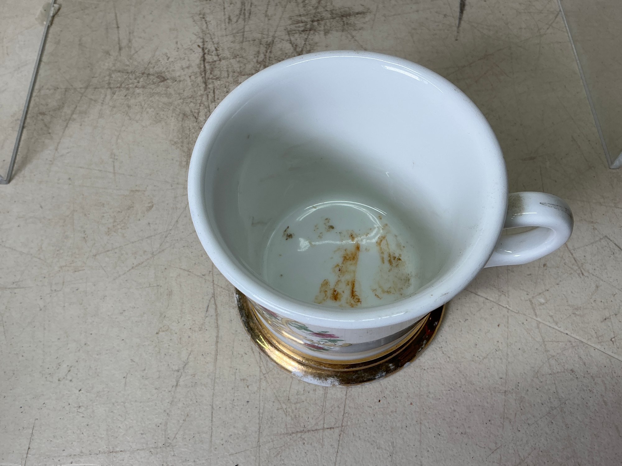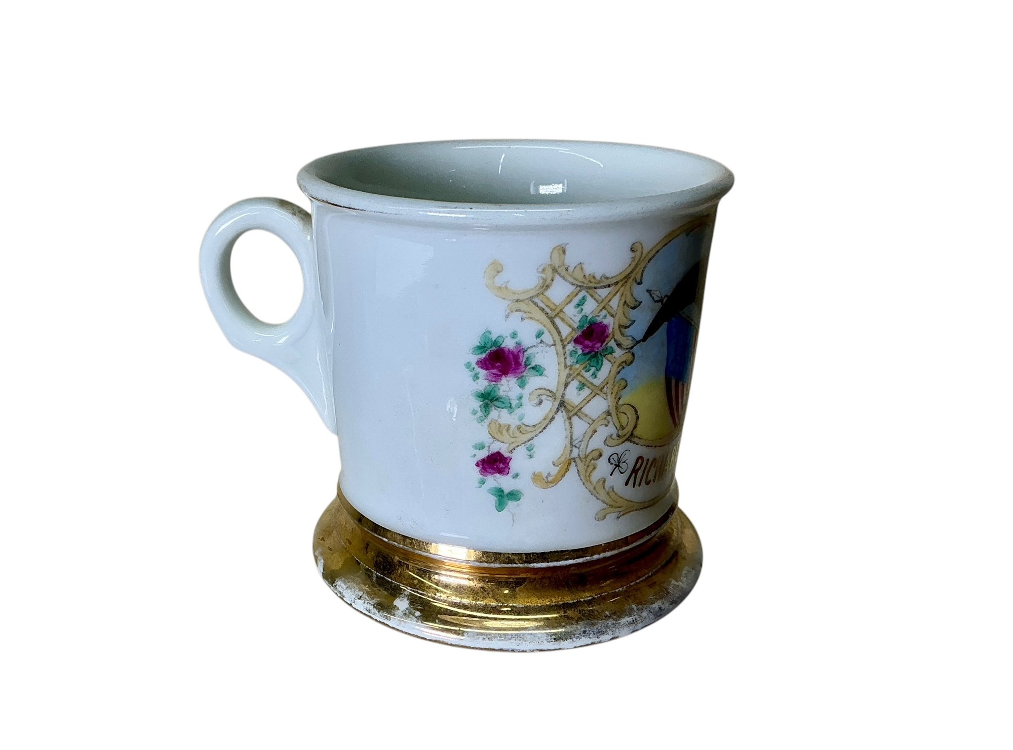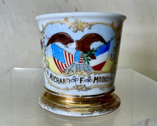 Vitnage T & V Limoges Federal Shaving Mug. Richard F. Moore. Shaving Mug shows some wear and has some staining inside. See photos for details. Shaving Mug is approx. 3.5”x3.5”.
