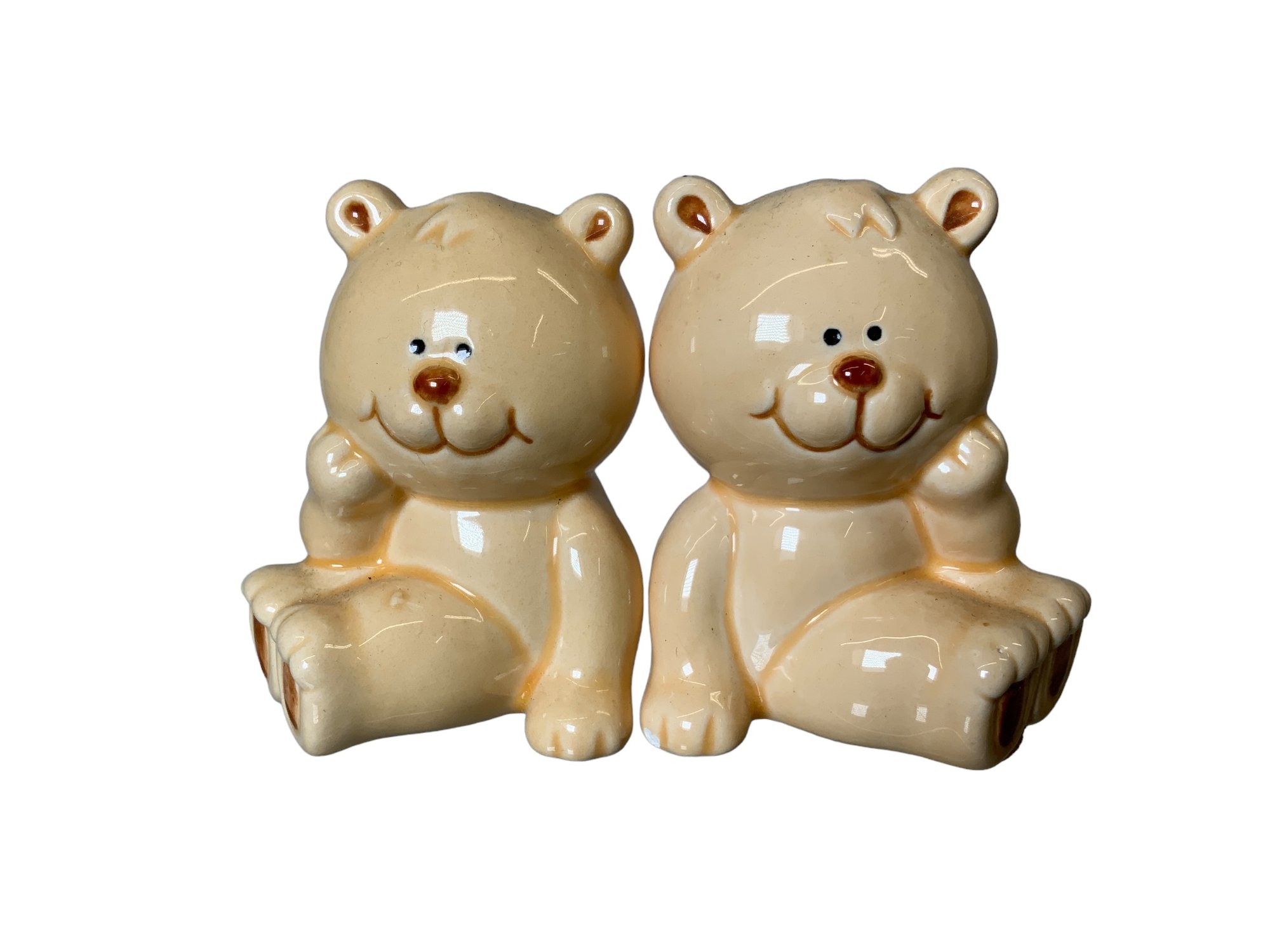 Vintage Teddy Bear Salt And Pepper Shaker Set Porcelain Made In Korea. In good used condition. They are each approx. 2.25” tall.