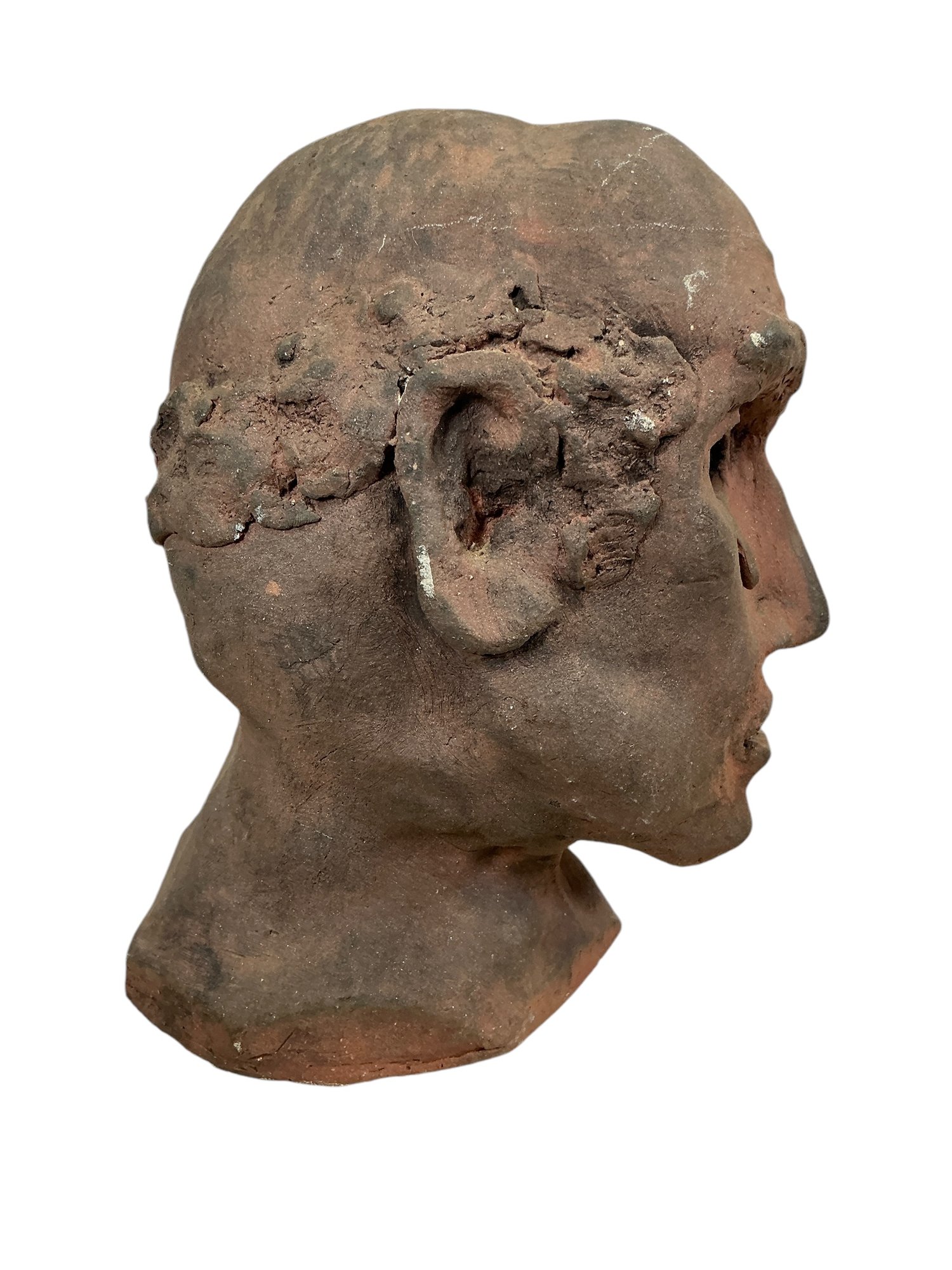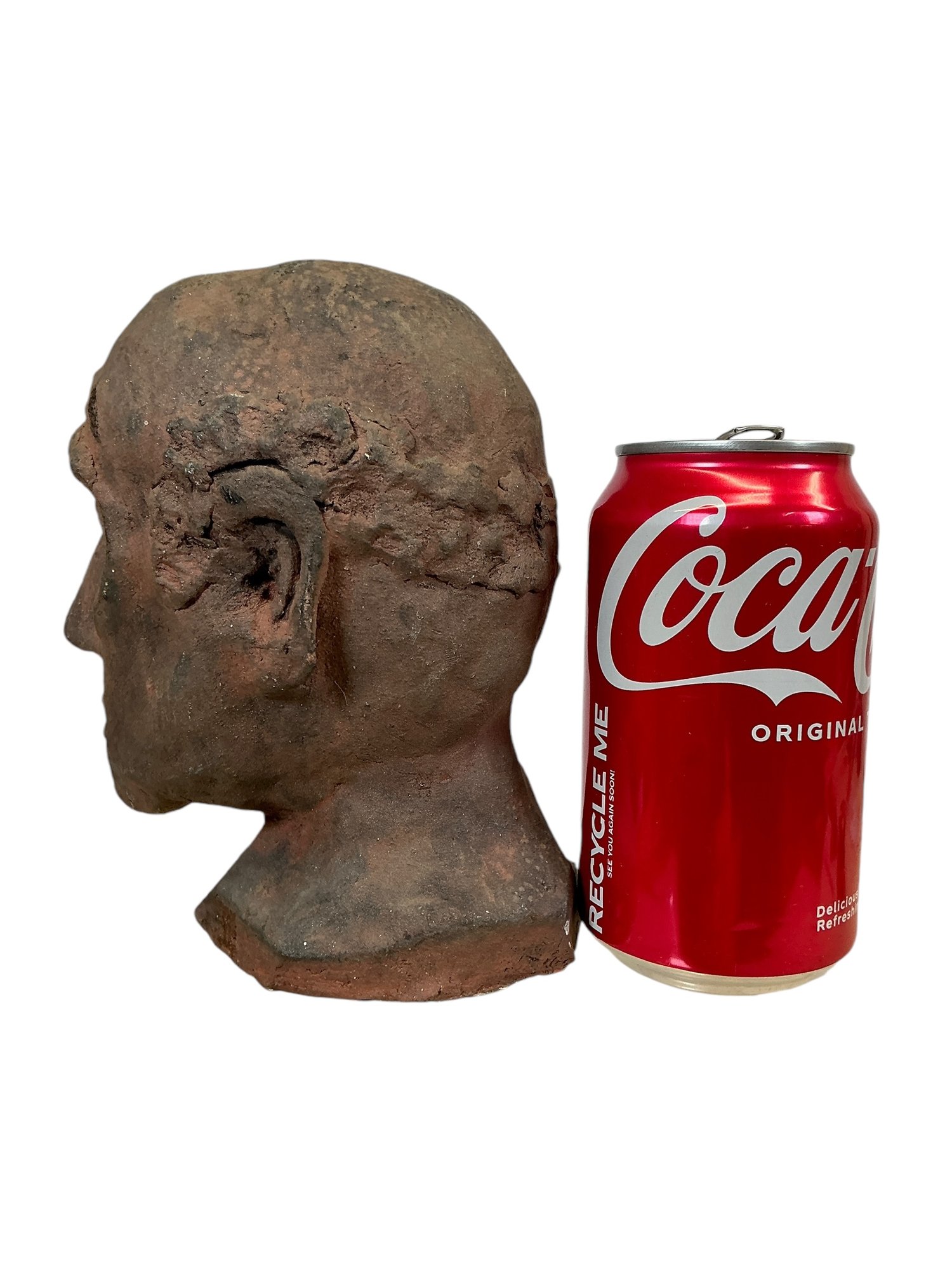 Vintage Terra Cotta Bust Of A Sad Man. In good condition. It is approx. 6.5” tall.