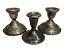 Vintage Trio Of Sterling Weighted Silver Candleholder. Combined weight of 2lbs .9oz.