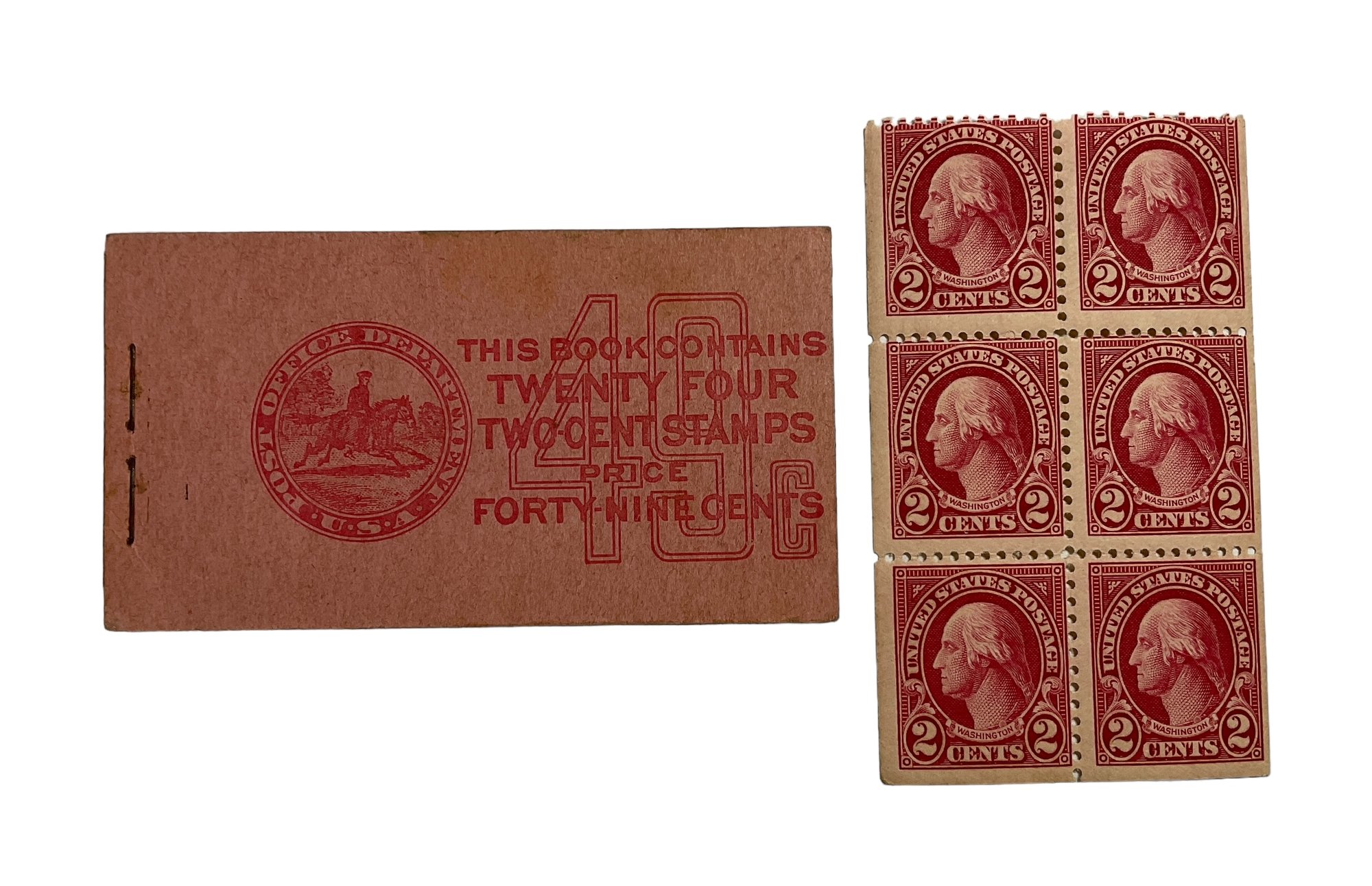 Vintage Two Cents Washington Postage Stamp Booklet Twenty Four Stamps Unused. One sheet is detached the rest are still attached to the booklet and unused.