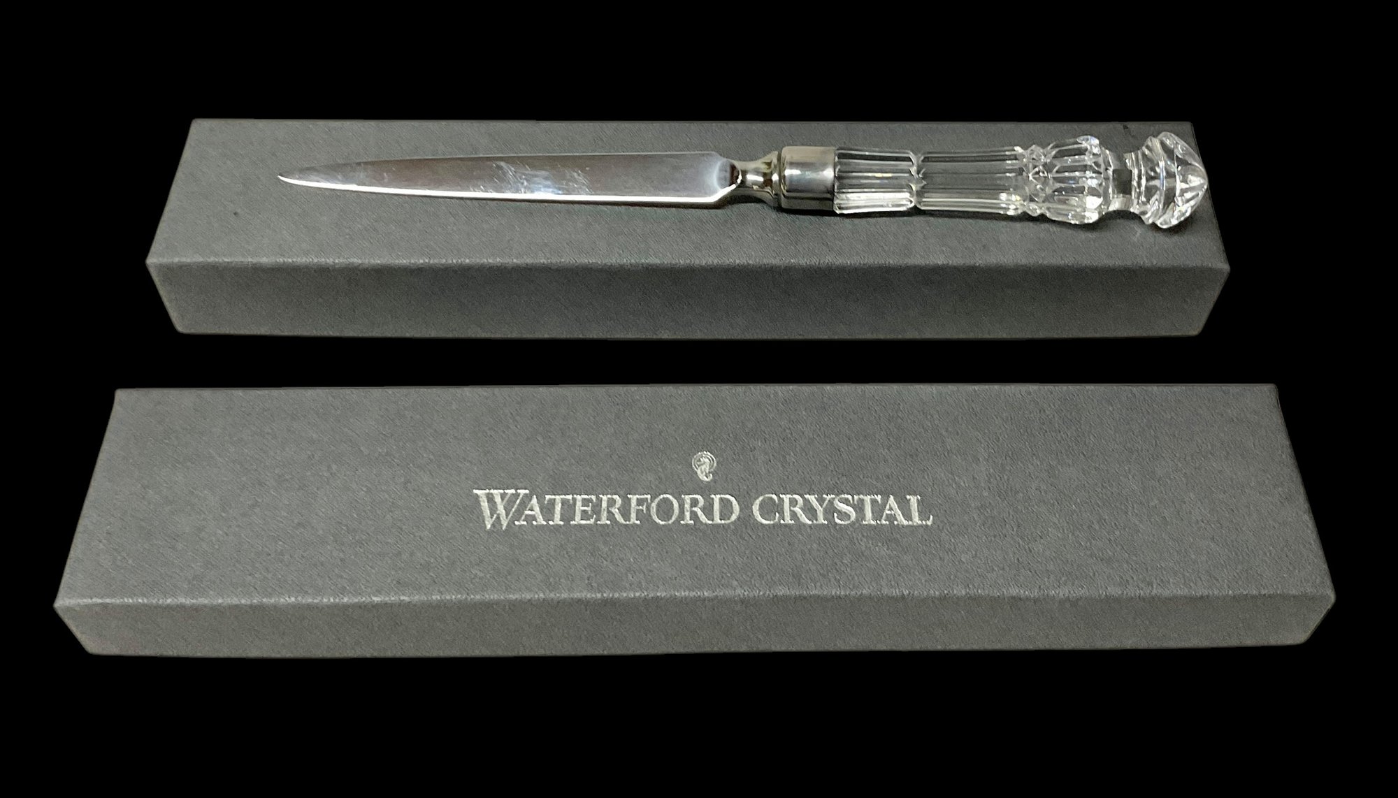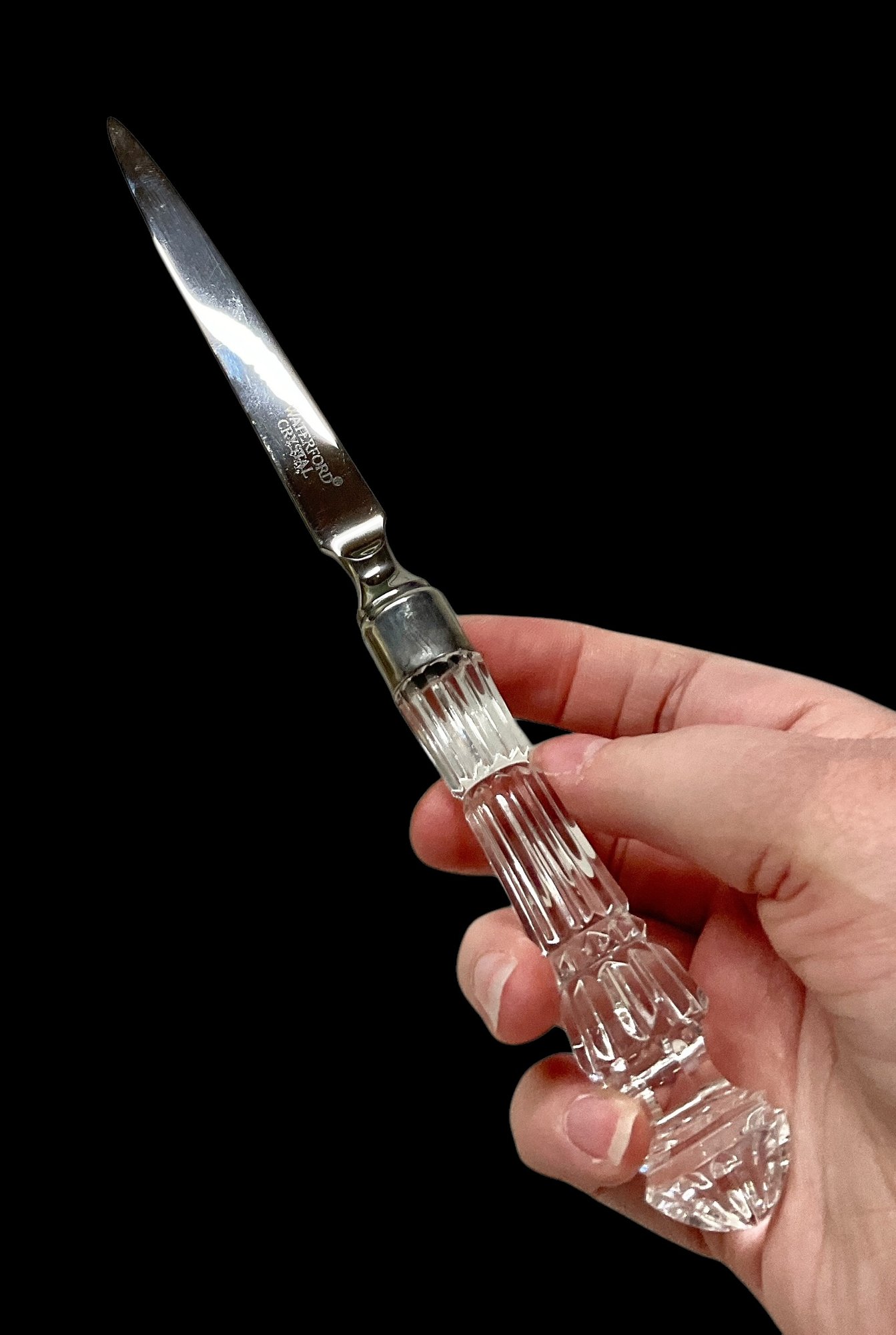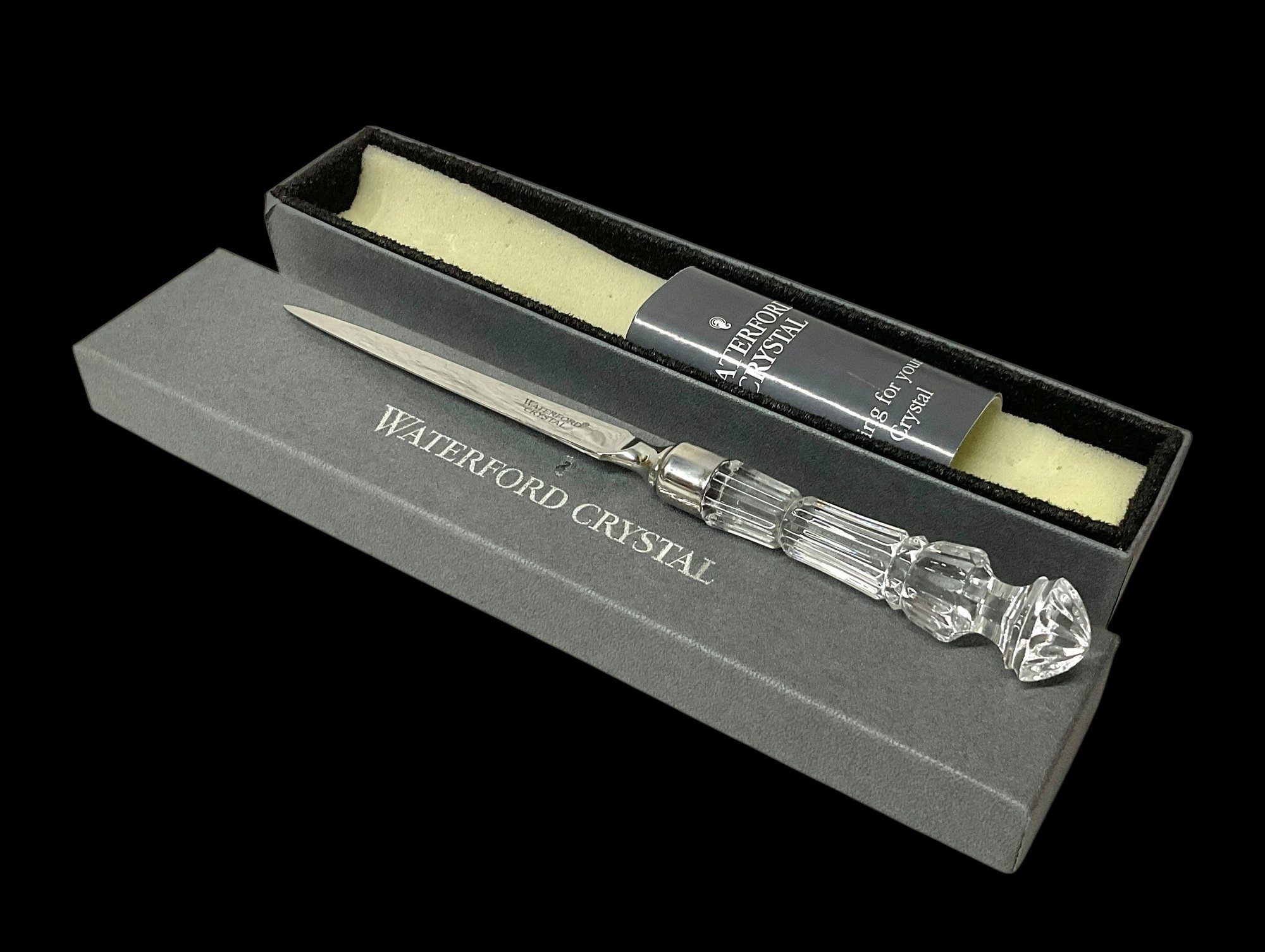 Vintage Waterford Crystal Lismore Letter Opener In Original Box. Letter opener has crystal handle, in great condition. Foam padding inside for protection. Box measures approximately 9.5” long.