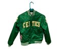 Vintage Youth Size Small Celtics Snap Up Jacket Made By Starter. In good used condition with minor wear. It is a youth size small and lying flat arm pit to arm pit it is approx. 16” wide.