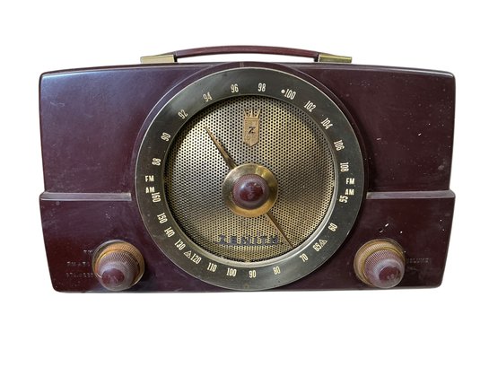 Vintage Zenith Bakelite Table Radio In Working Condition Model Y825. In good condition, it powers up and receives radio stations with some static. It is approx. 15” by 7.5” by 8.5.”