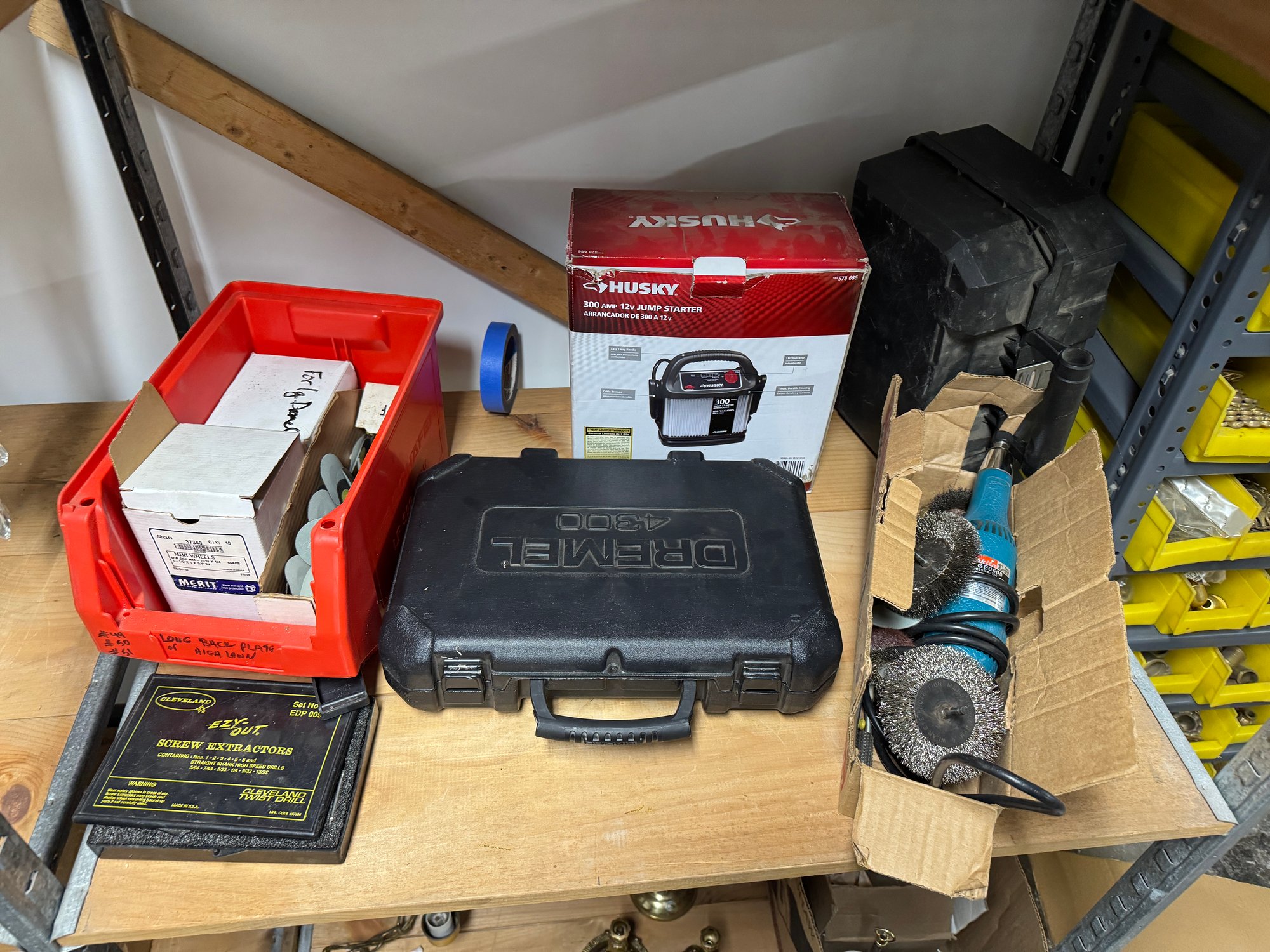 Whole Shelf Of Tools Dremel, Mikita Etc. According to the consignor, these and all tools are were working the last time they used them. I don't doubt it as the shop is in very nice condition. But are untested because we have about 700 lots to process!