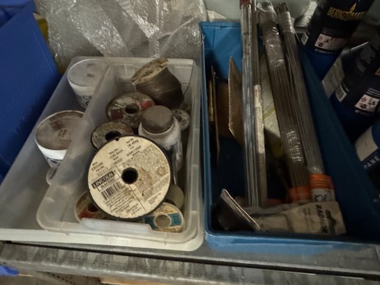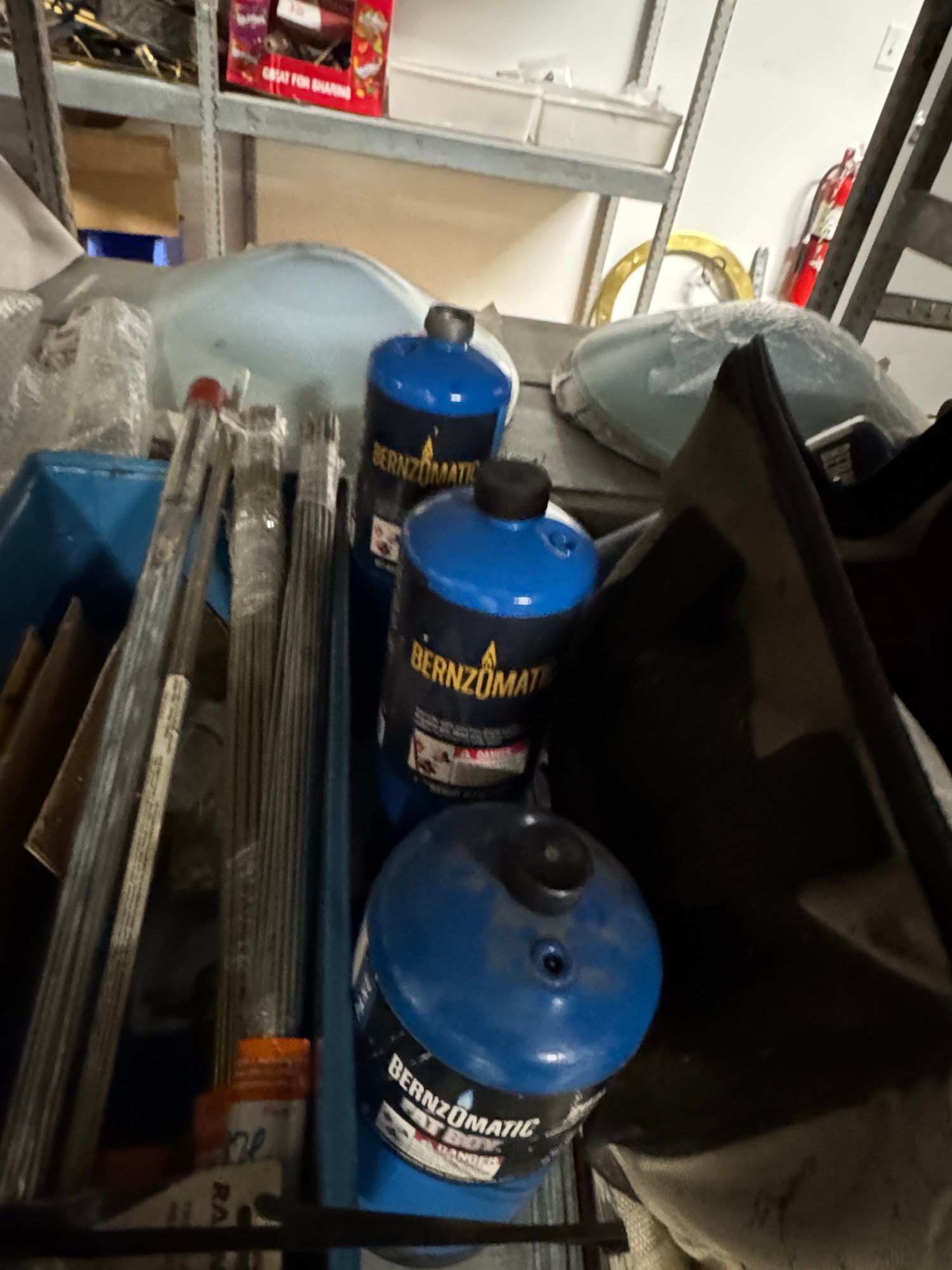 Whole Shelf Of Welding Tools And Supplies WYSISYG As found. Some of the propane tanks are full, some empty.