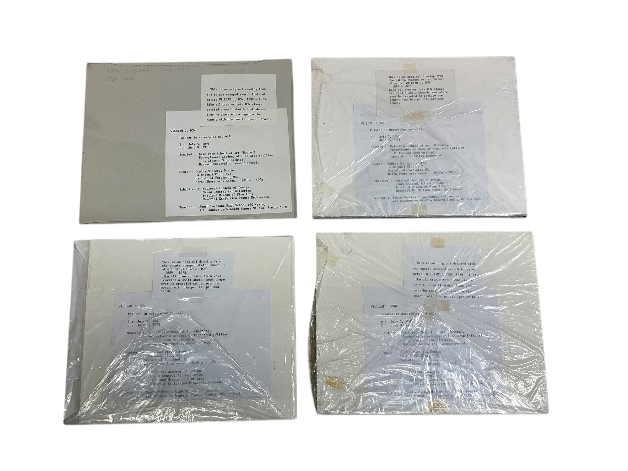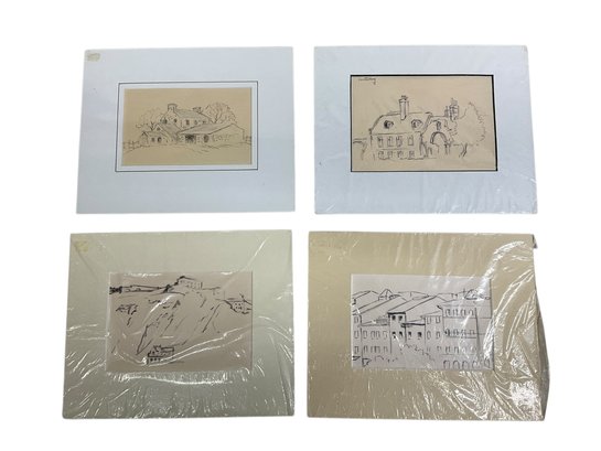 William Dow (1891-1973) Four Ink Sketches Of England And European Scenes. All in good condition. Each sight size is approx. 6.5” by 4.5” and the mats are each approx. 10” by 8”.