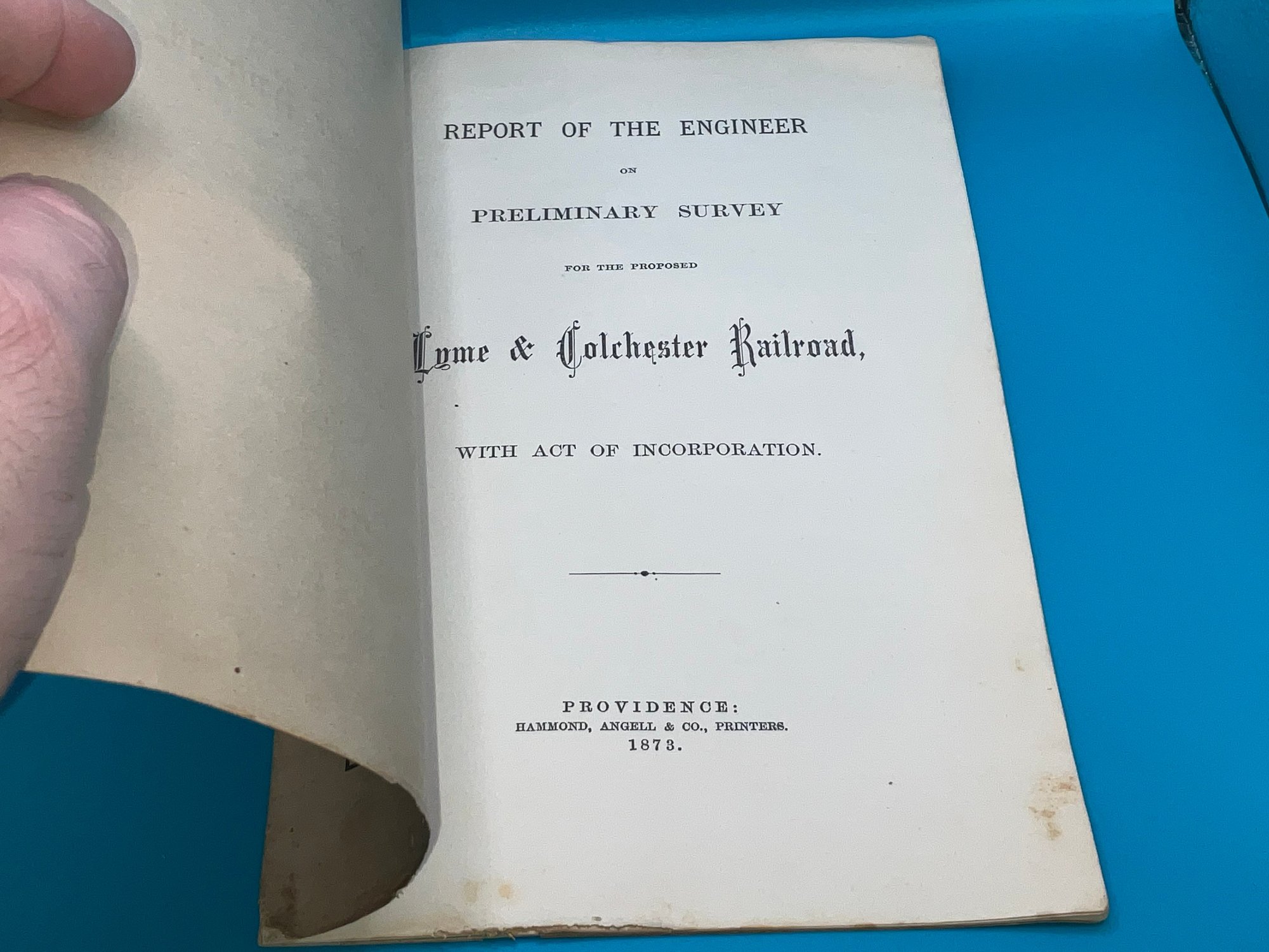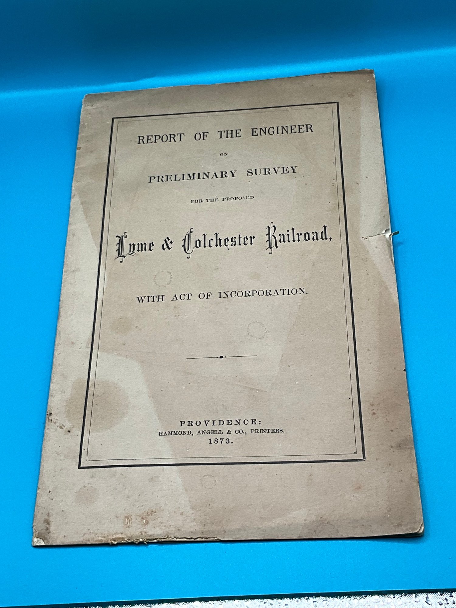 1873 Lyme & Colchester Railroad Report Of The Engineer Preliminary Survey