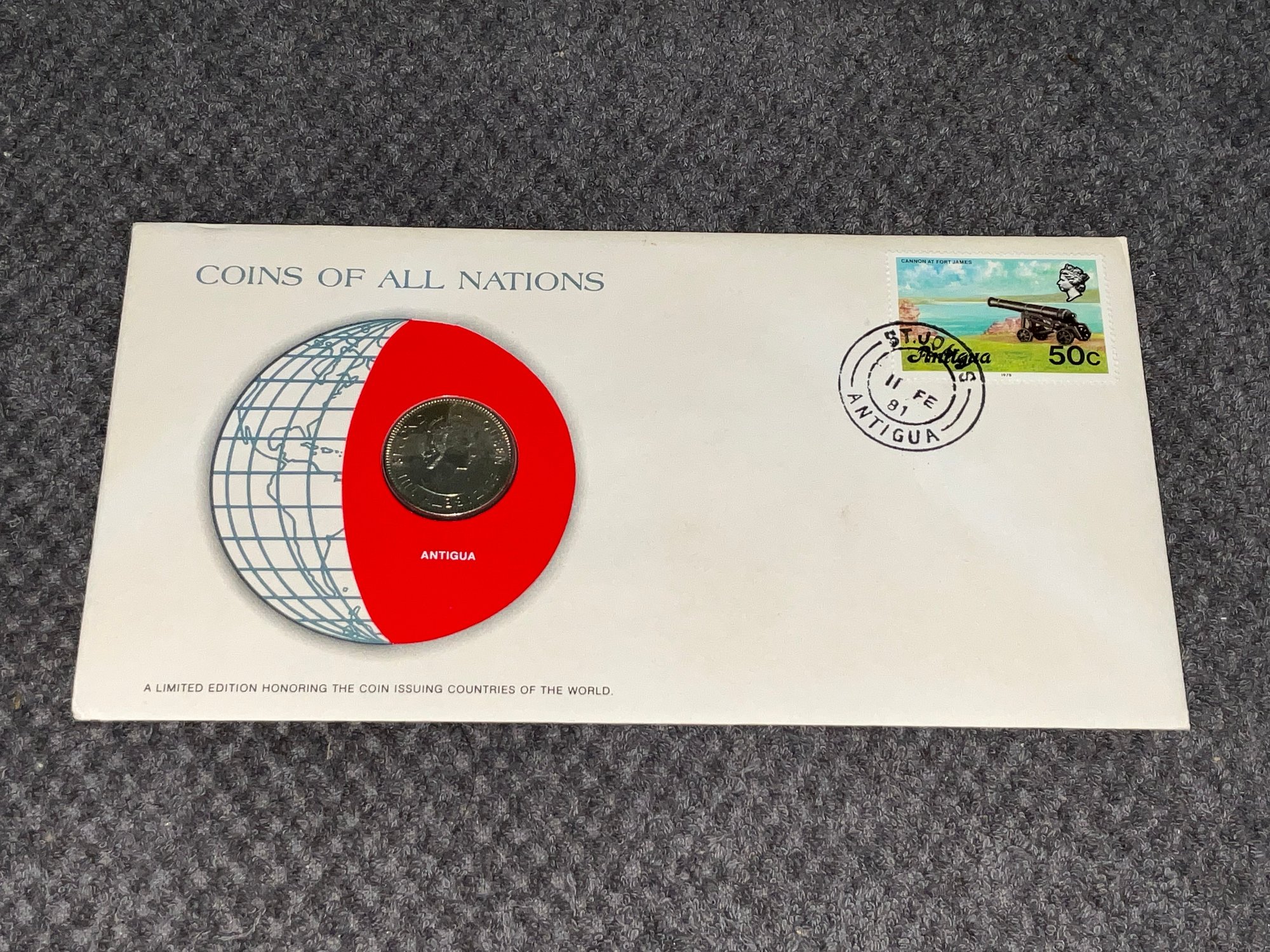 Antigua Coins Of All Nations Franklin Mint Coin & Stamp