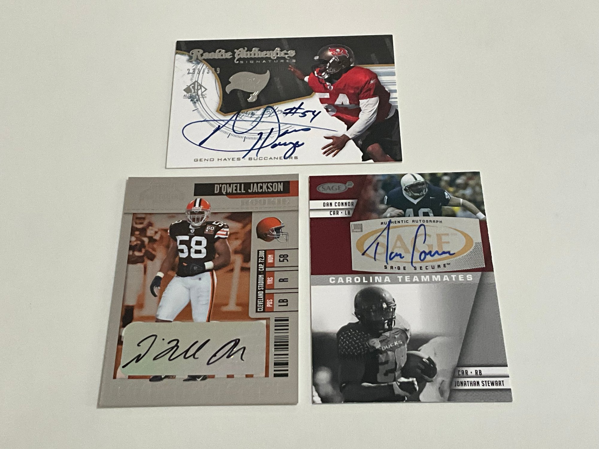 Autographed Cards Of Geno Hayes/399, Dan Conner And Dqwell Jackson