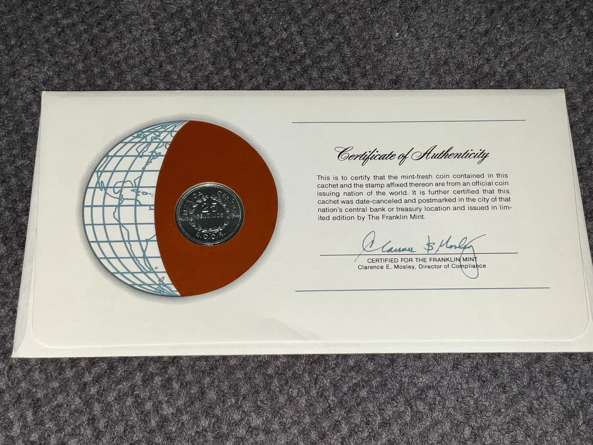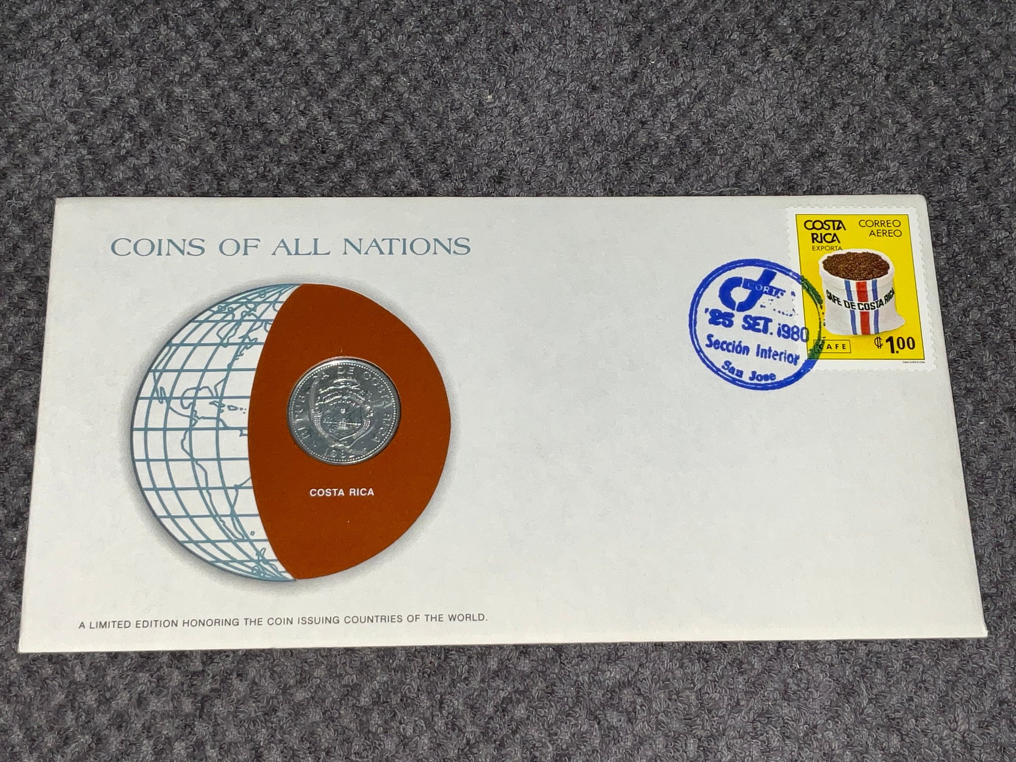 Costa Rica Coins Of All Nations Franklin Mint Coin & Stamp