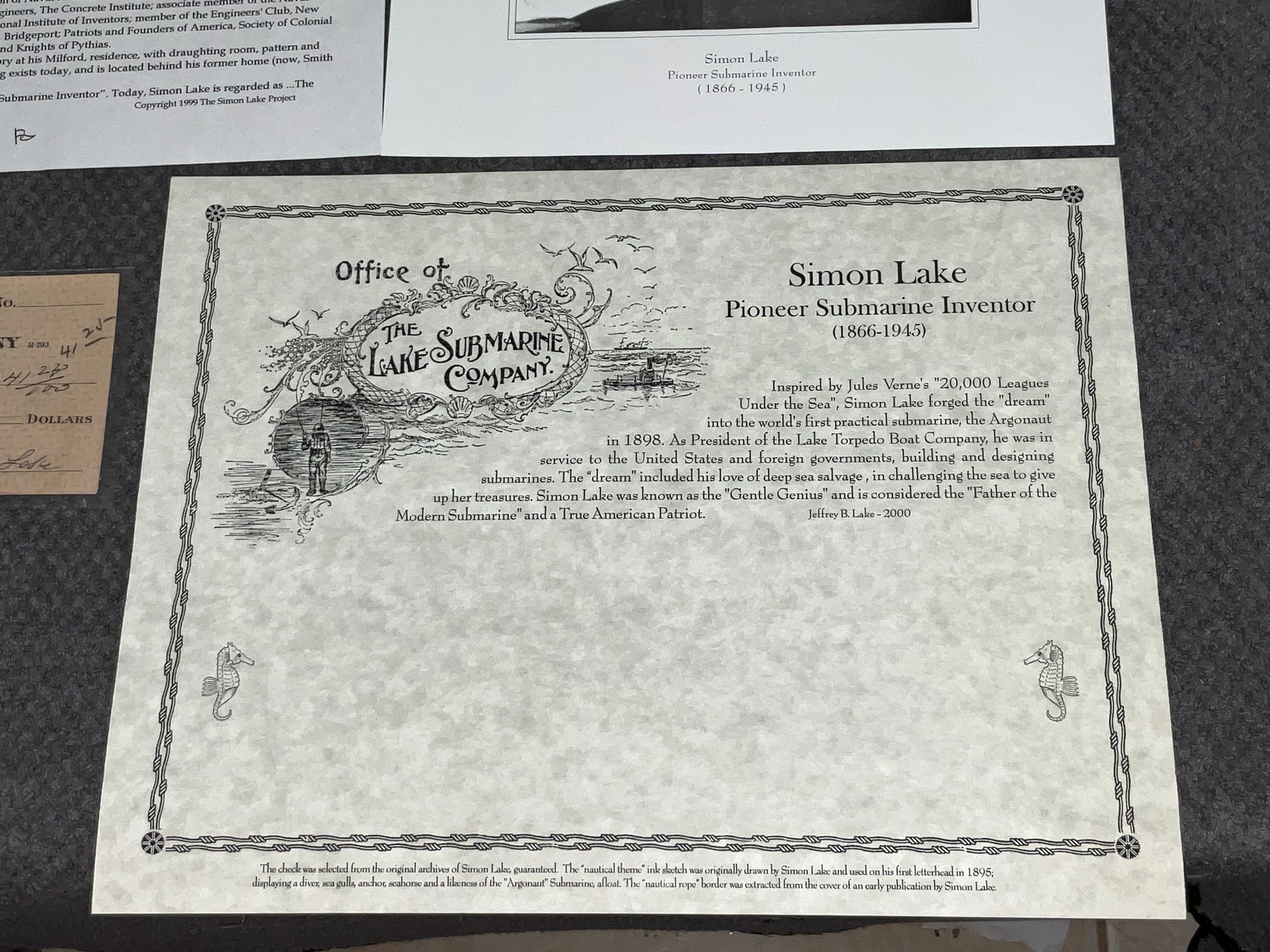 Simon Lake Signed Check From 1931 Father Of The Modern Submarine