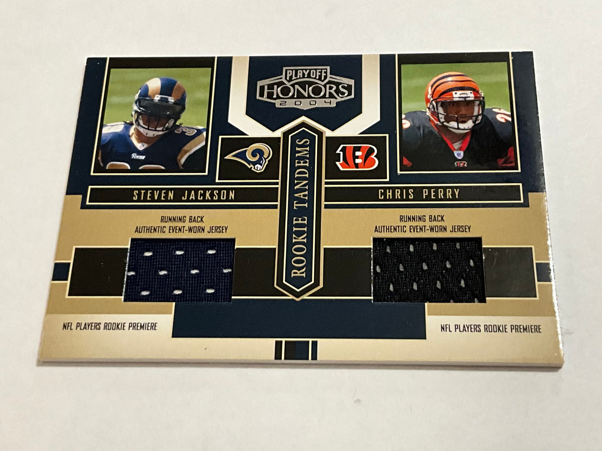 Steven Jackson And Chris Perry 2004 Playoff Honors Rookie Tandems Dual Jersey Card