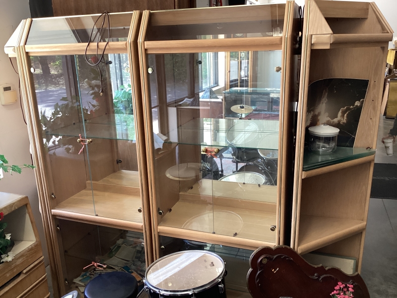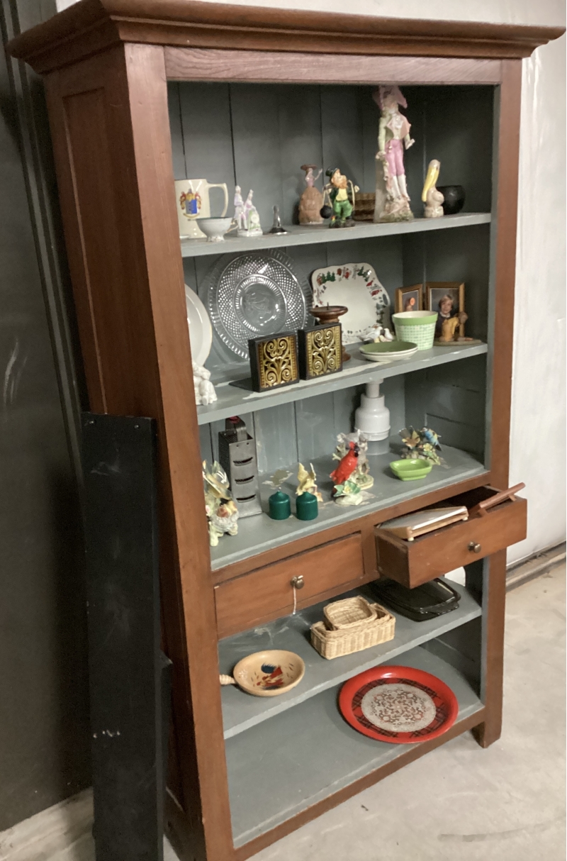 DISPLAY CABINETS, VTG. SCHOOL DESK,