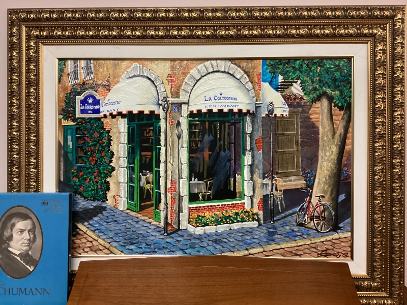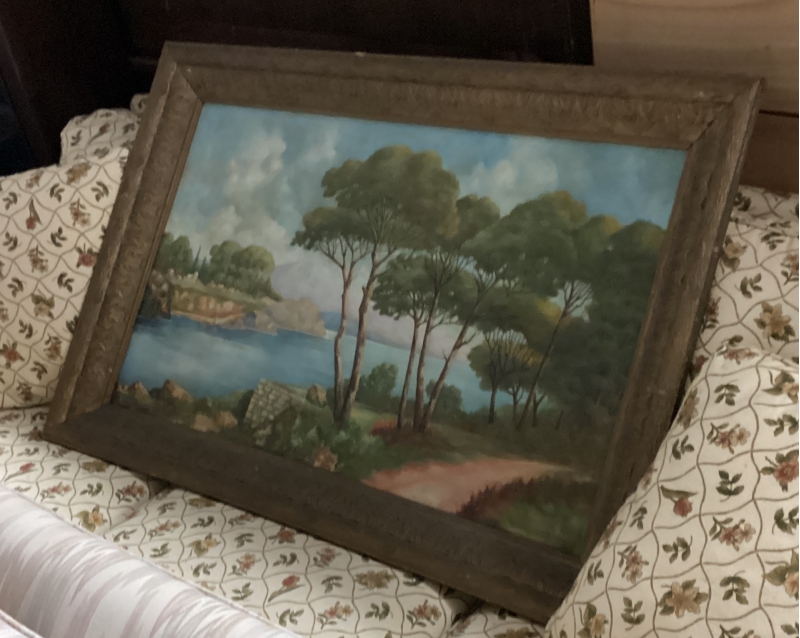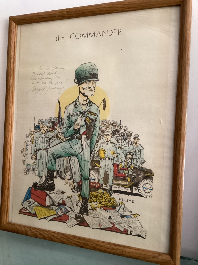 VINTAGE OIL ON CANVAS, WALL MIRROR, WALL CLOCKS, 1970s GEORGE FINLEY ''THE COMMANDER'' PRINT w PERSONAL NOTE TO COLONEL OF THE 210 FIELD ARTILLERY BRIGADE,