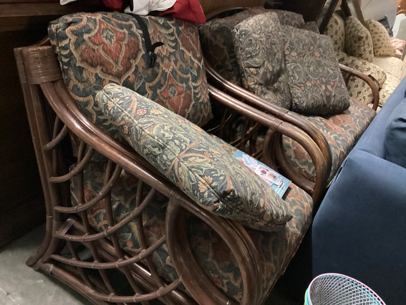 VINTAGE RATTAN LOVESEAT & CHAIR,