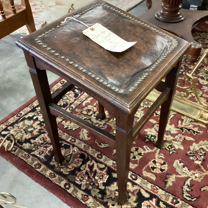 ANTIQUE ROSEWOOD SEAT WITH LEATHER INLAID & BRASS,