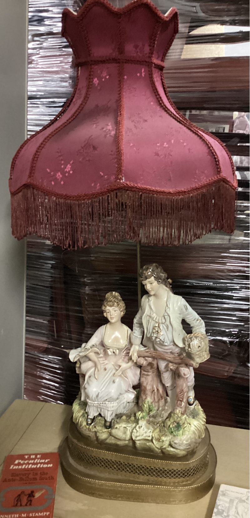 MID CENTURY PORCELAIN FIGURINES TABLE LAMP,